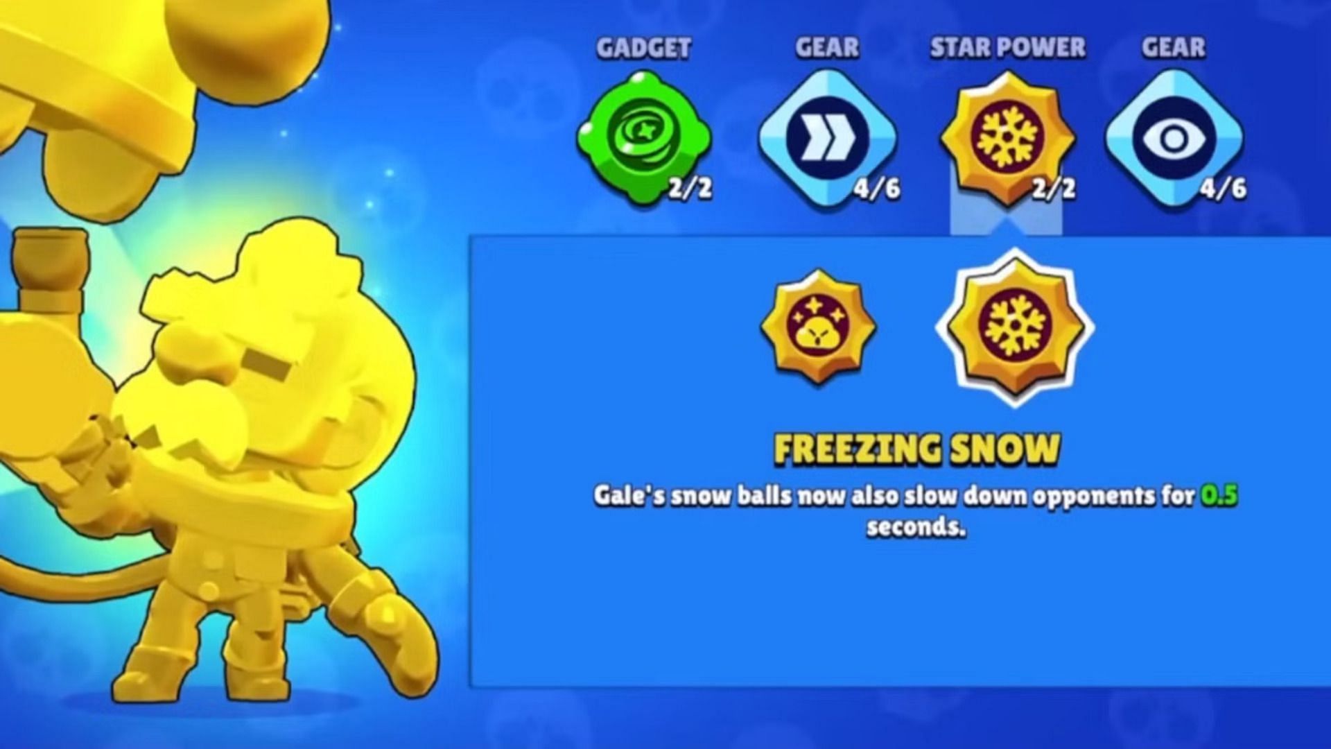 On the other hand, Freezing Star Power slows down enemies hit by his main attack for 0.5 seconds. It is ideal for open maps, where the slowdown effect can make it easier to land shots and keep foes at bay.