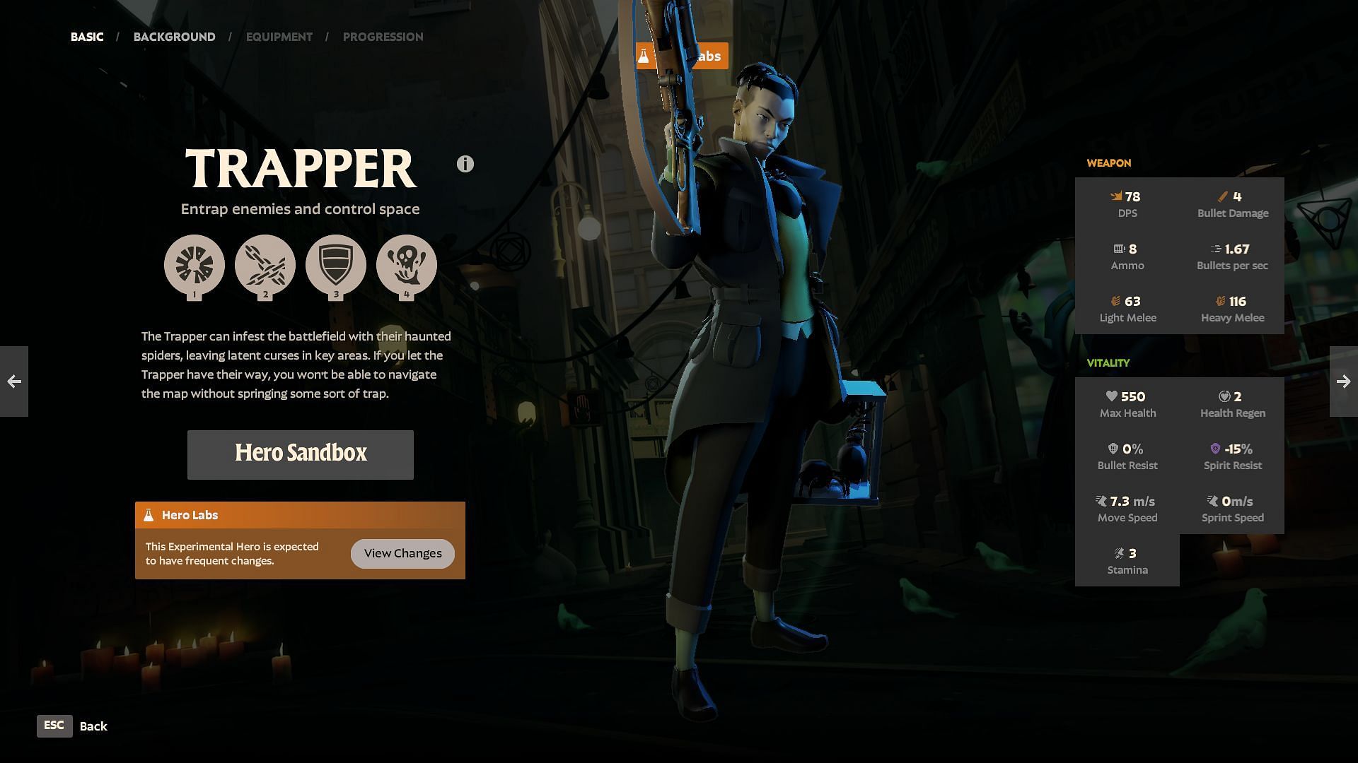 A) Currently, Trapper is an experimental hero that can only be tried in Hero Labs and Sandbox Mode.