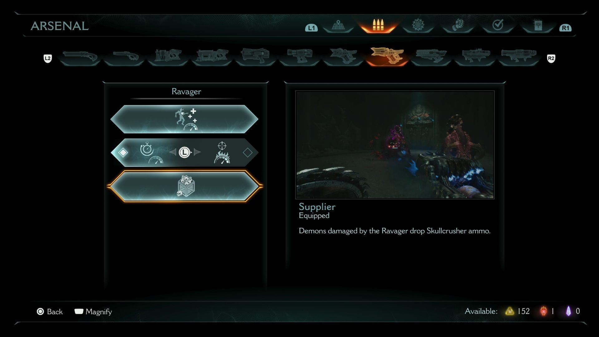 Here’s another feature I really loved about Doom The Dark Ages: Customization! I don’t mean weapon and armor skins, though those are nice. Each ranged and melee weapon has a little skill tree you can invest in, for Gold, Rubies, and Wraithstones. You also have a skill tree for each of the Shield Runes, to shake up what they can do.