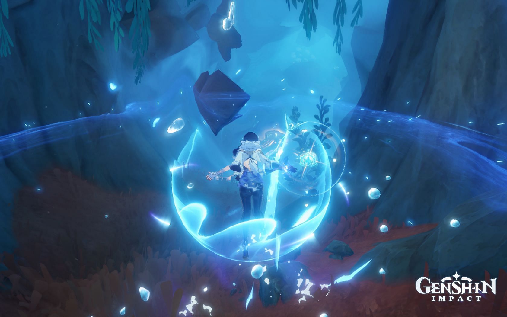Only a few steps are left in Genshin Impact's Echoes of the Ancient World. You must place a token and then absorb an Xenochromatic Armored Crab's Elemental Skill. After that, you must defeat a few waves of regular Armored Crabs. This shouldn't be an issue since you already have a high-damaging Elemental Skill to use underwater from the previous step.