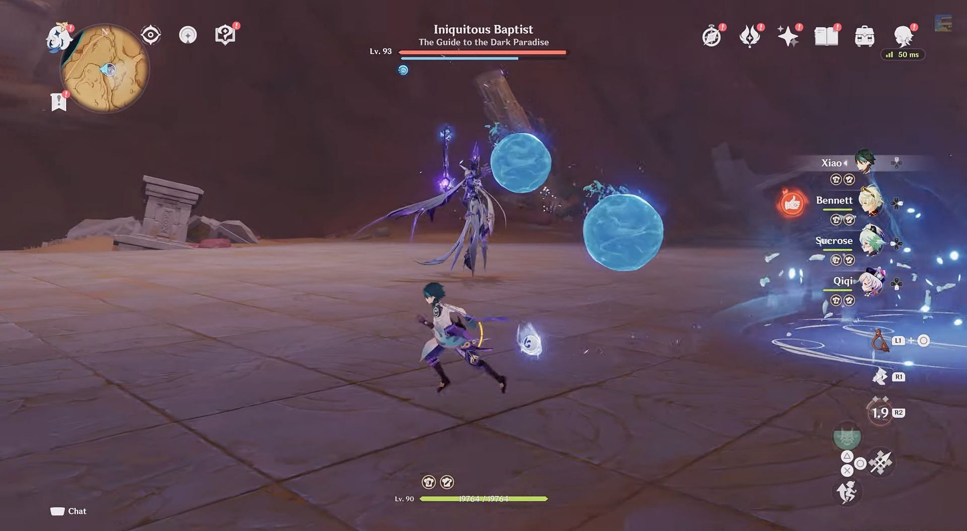 Iniquitous Baptist has two primary mechanics that can be cracked using elemental reactions. One of their phases involves spawning basic rings all over the arena, which can be destroyed using elemental reactions. Doing this will also make the boss temporarily vulnerable, paralyzing them for the DPS phase.
