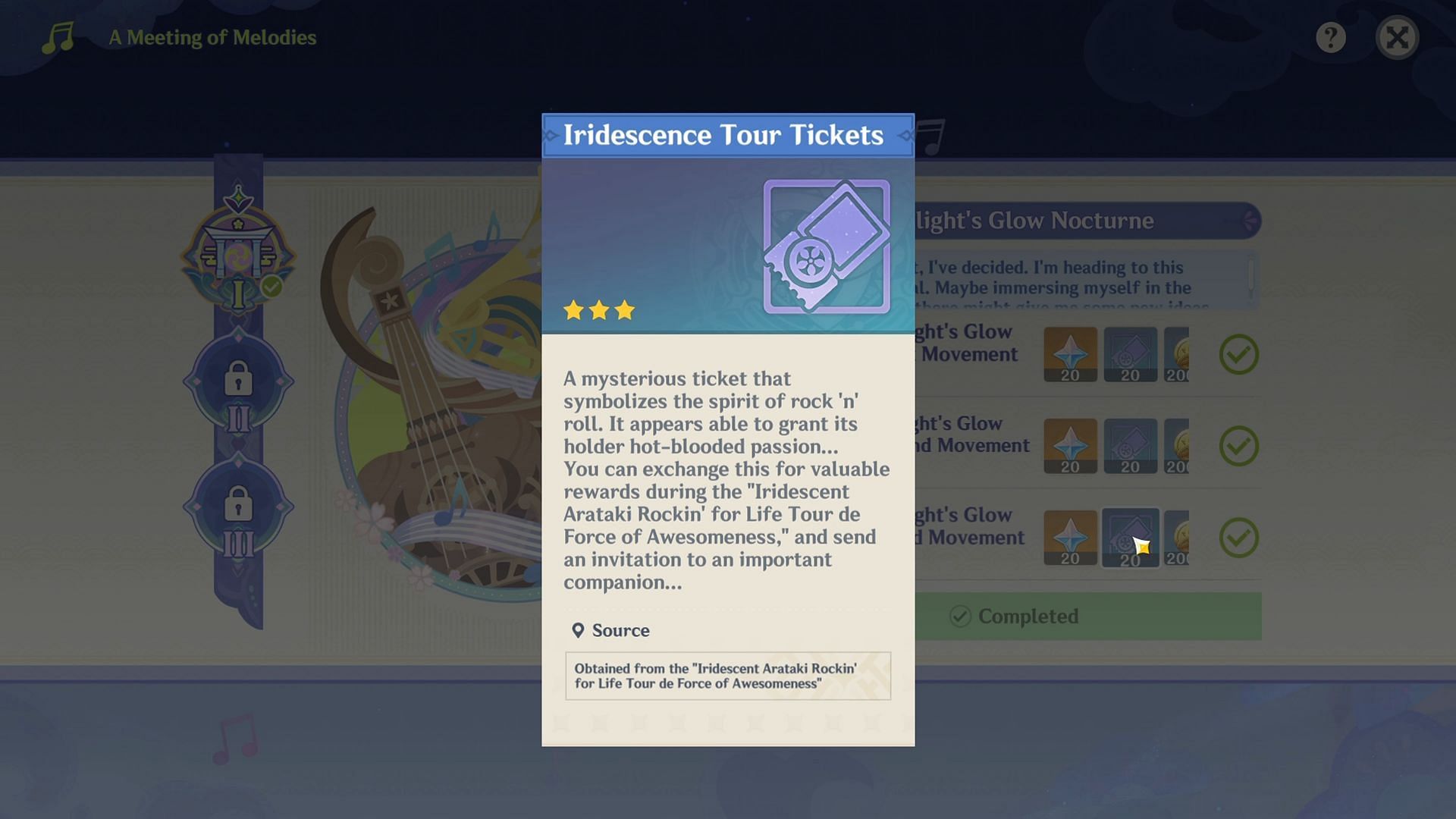It should be noted that some stages in the event are time-gated, so obtaining all the Iridescent Tour Tickets may require some time.