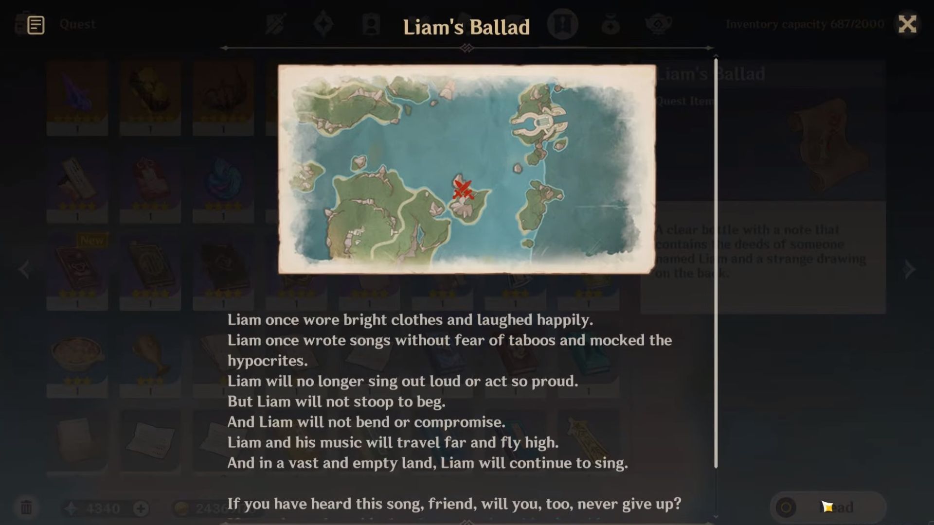 This guide will unveil the secrets of Liam's Ballad, directing you to the map's location and providing a straightforward solution to the puzzle. At the end of this guide, Genshin Impact players will have unlocked a precious chest and obtained 10 Primogems along with other useful resources. Here is everything you need to know.