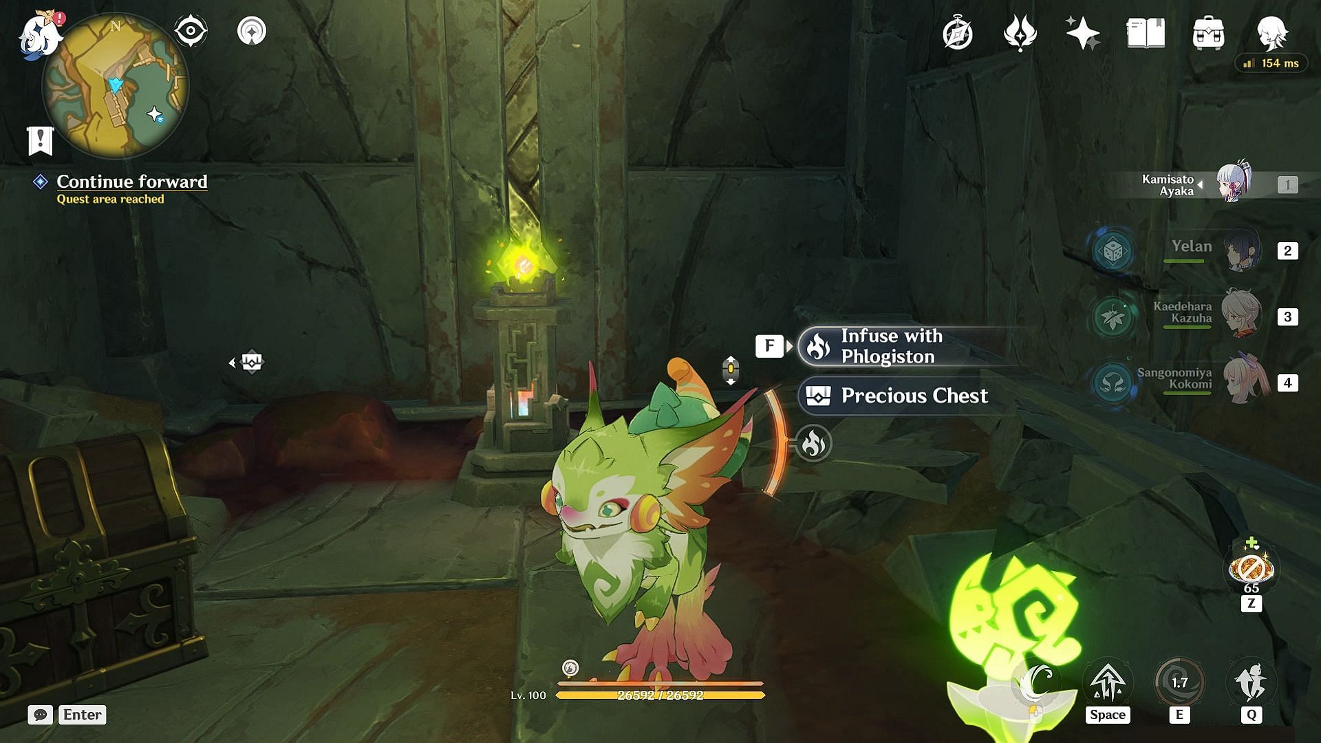 Collect the Precious Chest and infuse the nearby altar with Phlogiston. This will summon a few Colingrass Sigils that you can use to get to the other side as Yumkasaur.