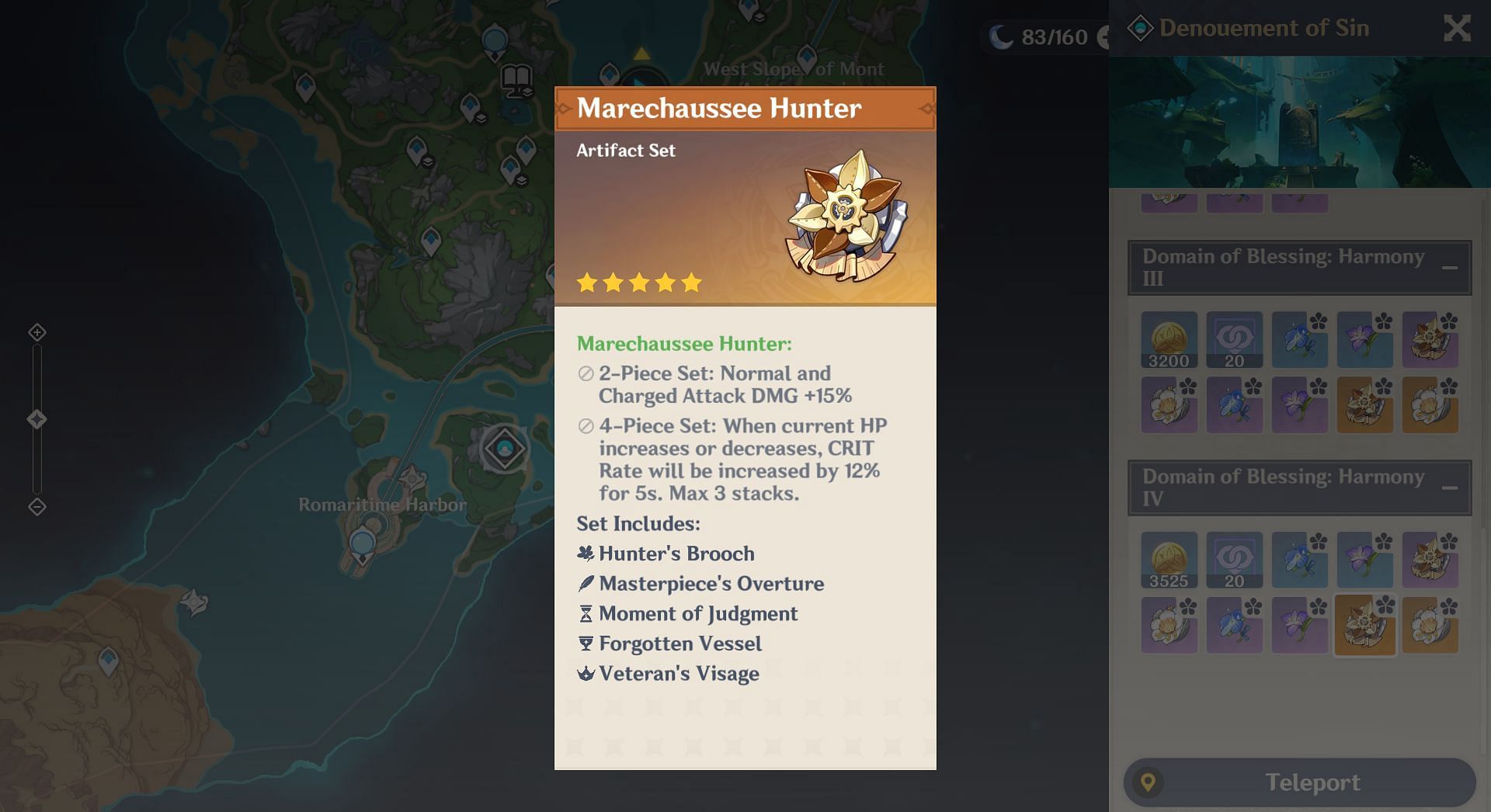 The 4-pc Marechaussee Hunter will usually be Wriothesley's best artifact set in the game. It buffs the unit's Normal and Charged Attack DMG, while implementing a CRIT Rate stacking effect whenever there is a change in the user's Max HP.