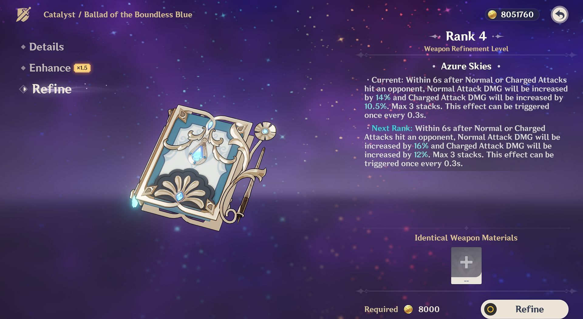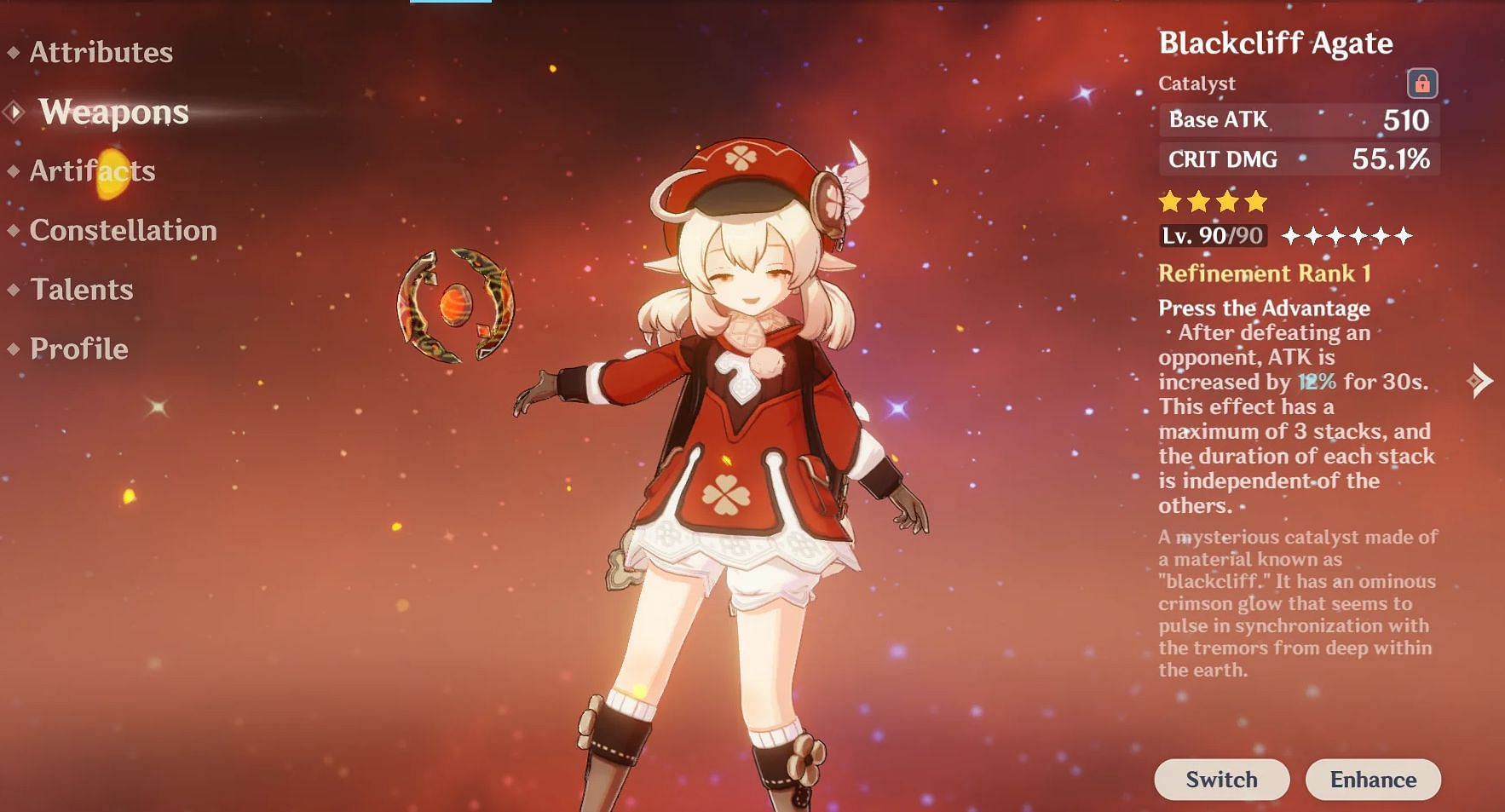 Blackcliff Agate is a decent choice for the Duke of Fortress of Meropide. This 4-star Catalyst can be obtained from the in-game shop by exchanging Starglitters. It provides a good amount of CRIT DMG and ATK% bonus. However, the weapon's passive only triggers after defeating an opponent, so it is not the most viable option against an ST enemy in Genshin Impact.