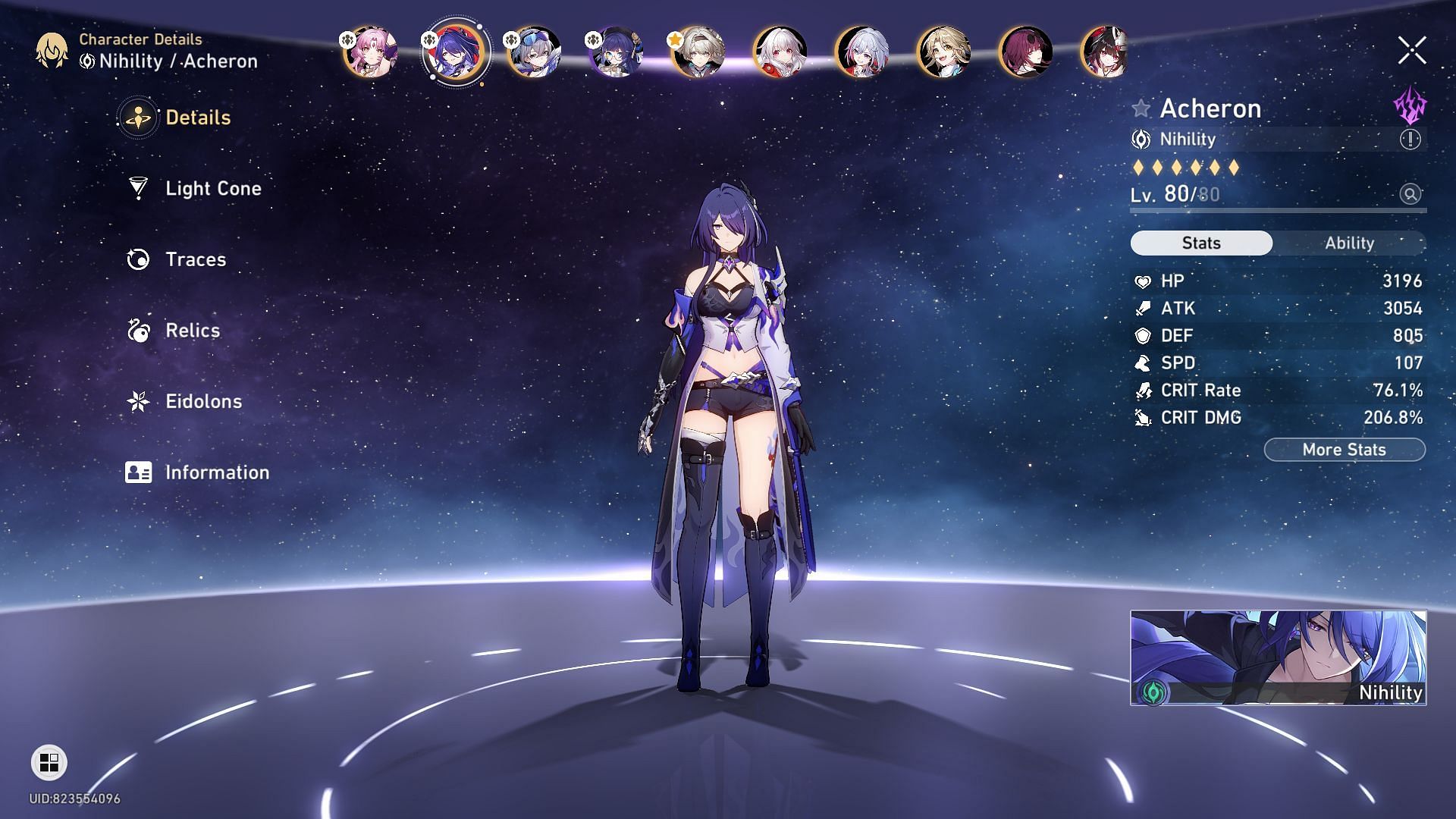 - Acheron: 3,500 - 4,000 ATK, 100% CRIT Rate, 150 - 200% CRIT DMG.