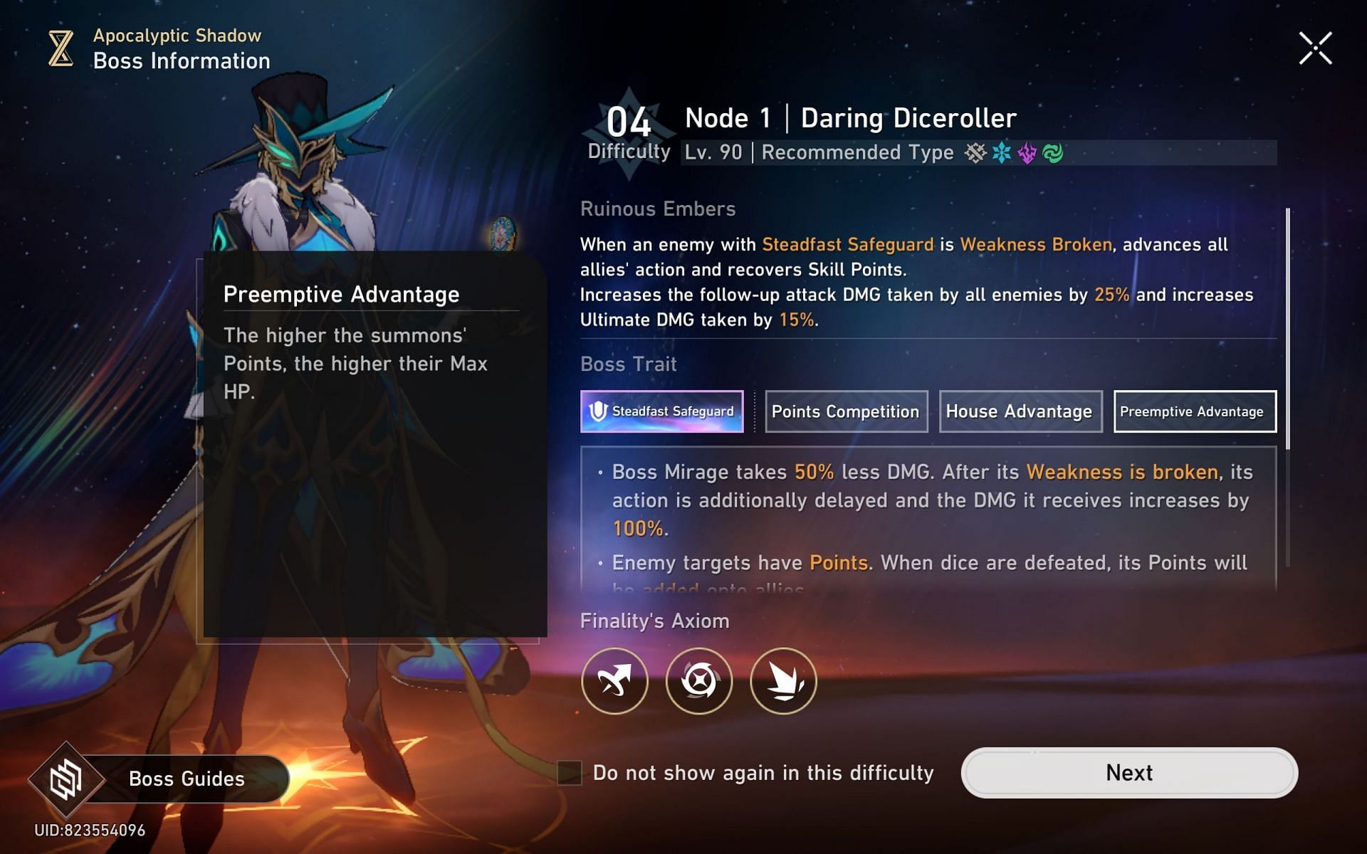 - The boss’s Mirage ability bestows all adversaries and allies Points. When the targeted adversary has more points than the ally character, they take reduced damage and Toughness damage.