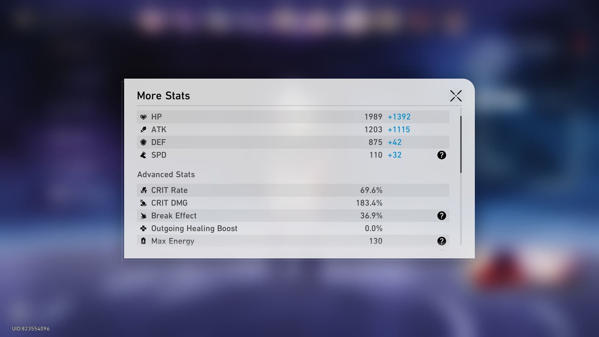 - Firefly: 134 - 150 SPD, 200 - 250% Break Effect, 2,000 - 2,800 ATK