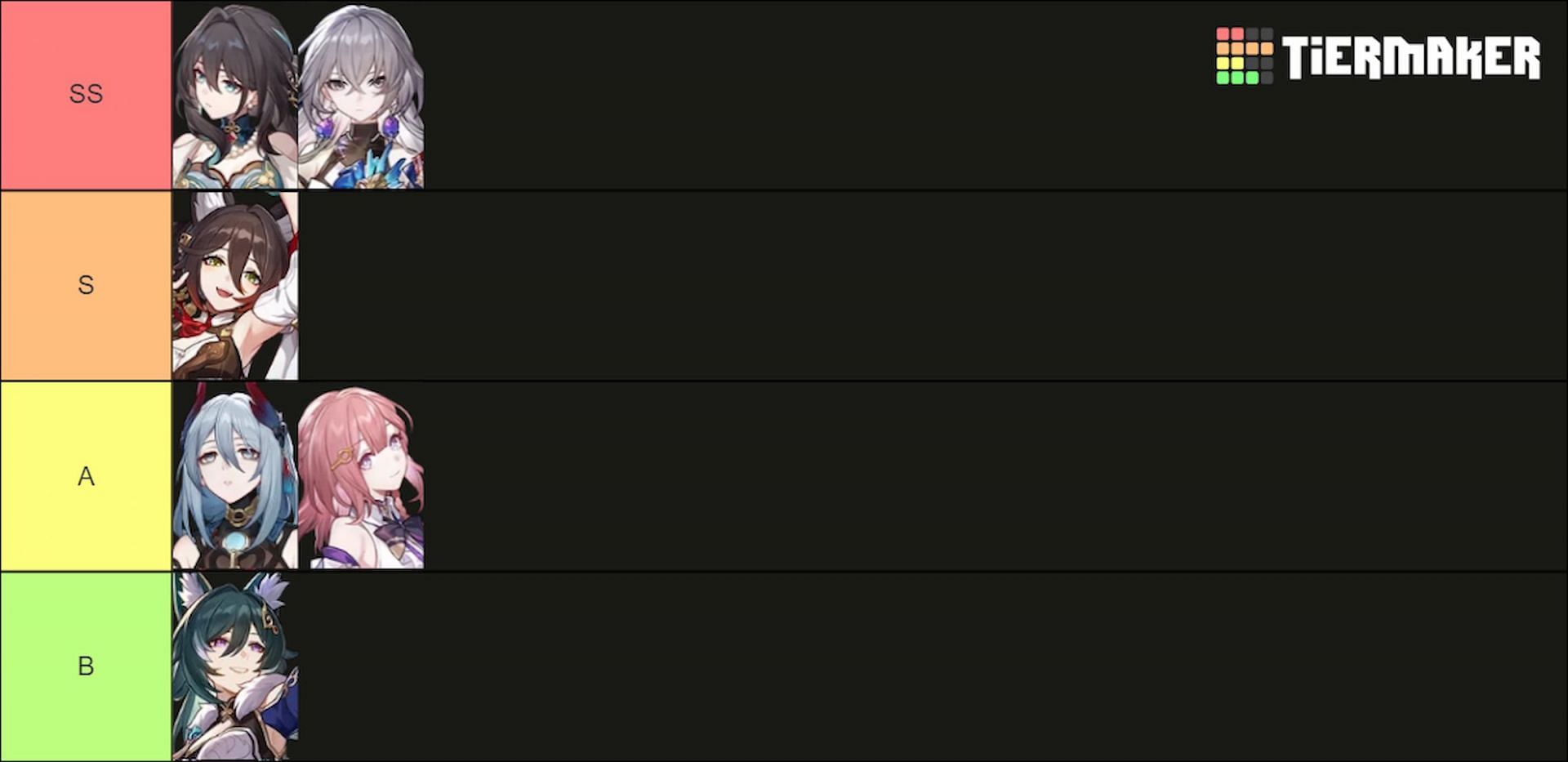 The A rank consists of characters who are good but falter against the previous tier's units.