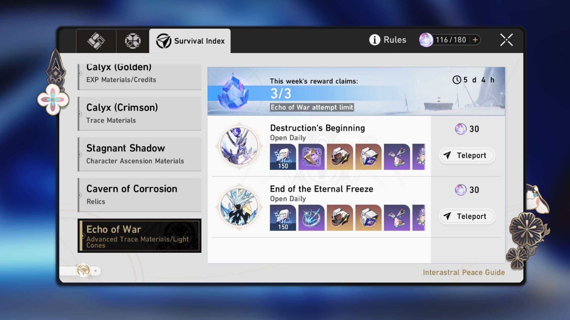 To ascend any Imaginary unit, you need the Golden Crown of the Past Shadow, dropped from the Shape of Mirage Stagnant Shadow in Jarilo-VI’s Backwater Pass. You can teleport to the location using Honkai Star Rail’s survival Index.