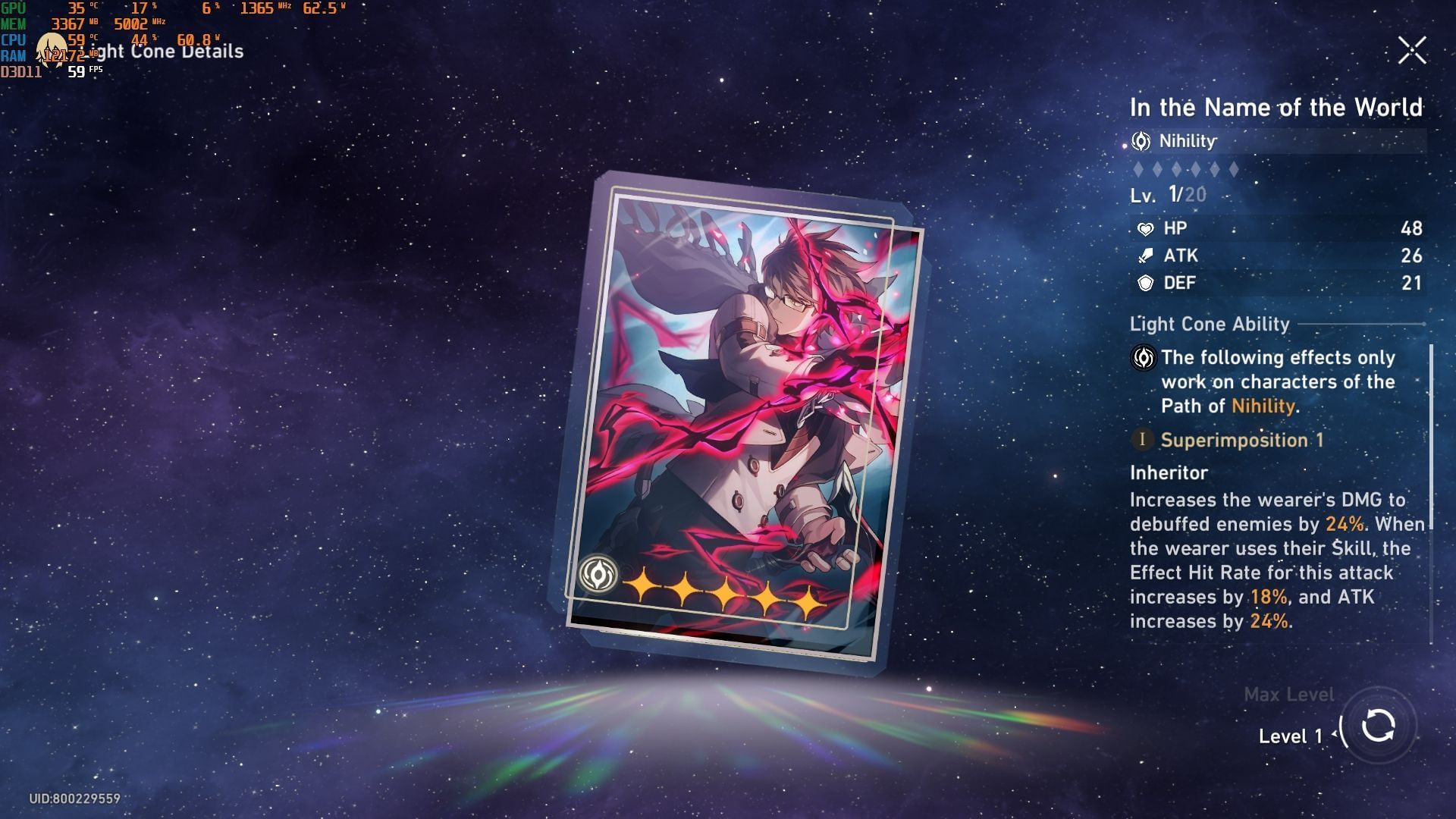 Additionally, the Light Cone can also increase the wearer's Effect Hit Rate upon using a skill.