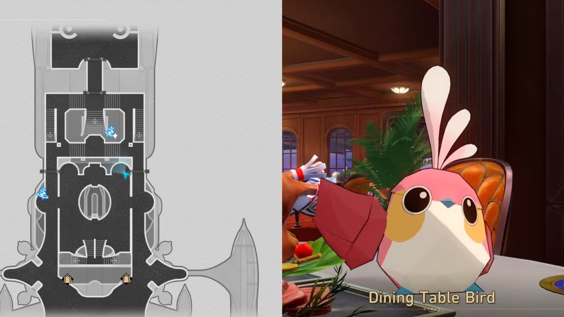 Enter the Banquet Hall by teleporting to the Space Anchor of the same name. Check the tables on the far east corner of the room. The Dining Table Bird will be hiding among the dishes.