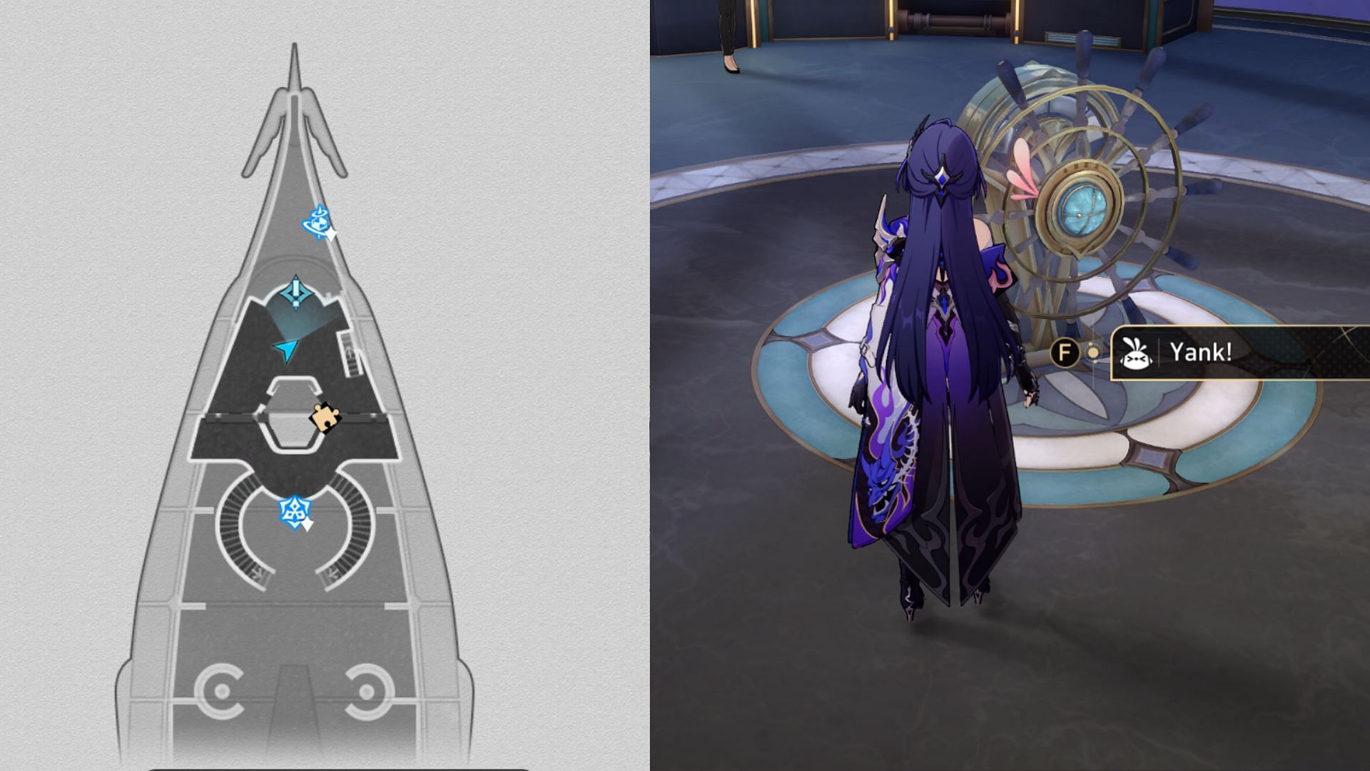 Lastly, teleport to the Cockpit Space Anchor and climb up the stairs. You will find a tail sticking out of the rudder. Pull the tail to set the Captain Bird free.