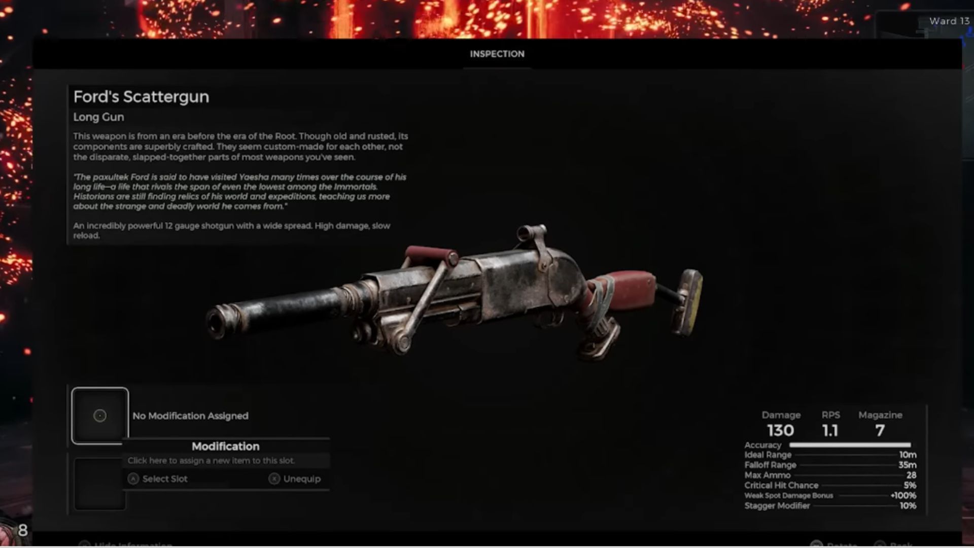 Once unlocked, Ford's Scattergun becomes available for selection on your journey. This potent shotgun will aid you in accomplishing the task of eliminating enemies in Remnant 2, proving particularly advantageous in battles against formidable bosses.