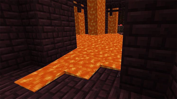 In the overworld, digging through to the bottom will find lava as well. The placement depends on the randomization of the Minecraft world. Below y-level 10 could become very dangerous. At any moment, a player could remove a block right underneath them and crash down into the lava pit.