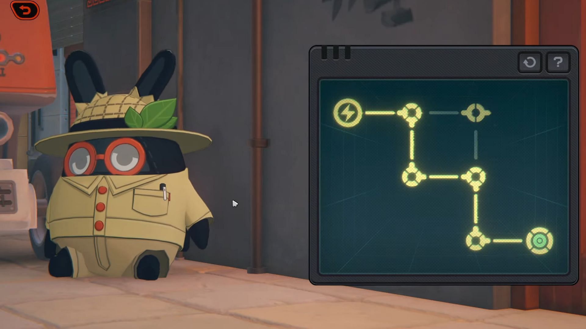 Once you find the Treasure Hunt Bangboo by the Waterfall Soup, interact with the creature to rewire its system. The process involves solving a simple encryption puzzle composed of different modules. Rotate them accordingly to create a circuit.