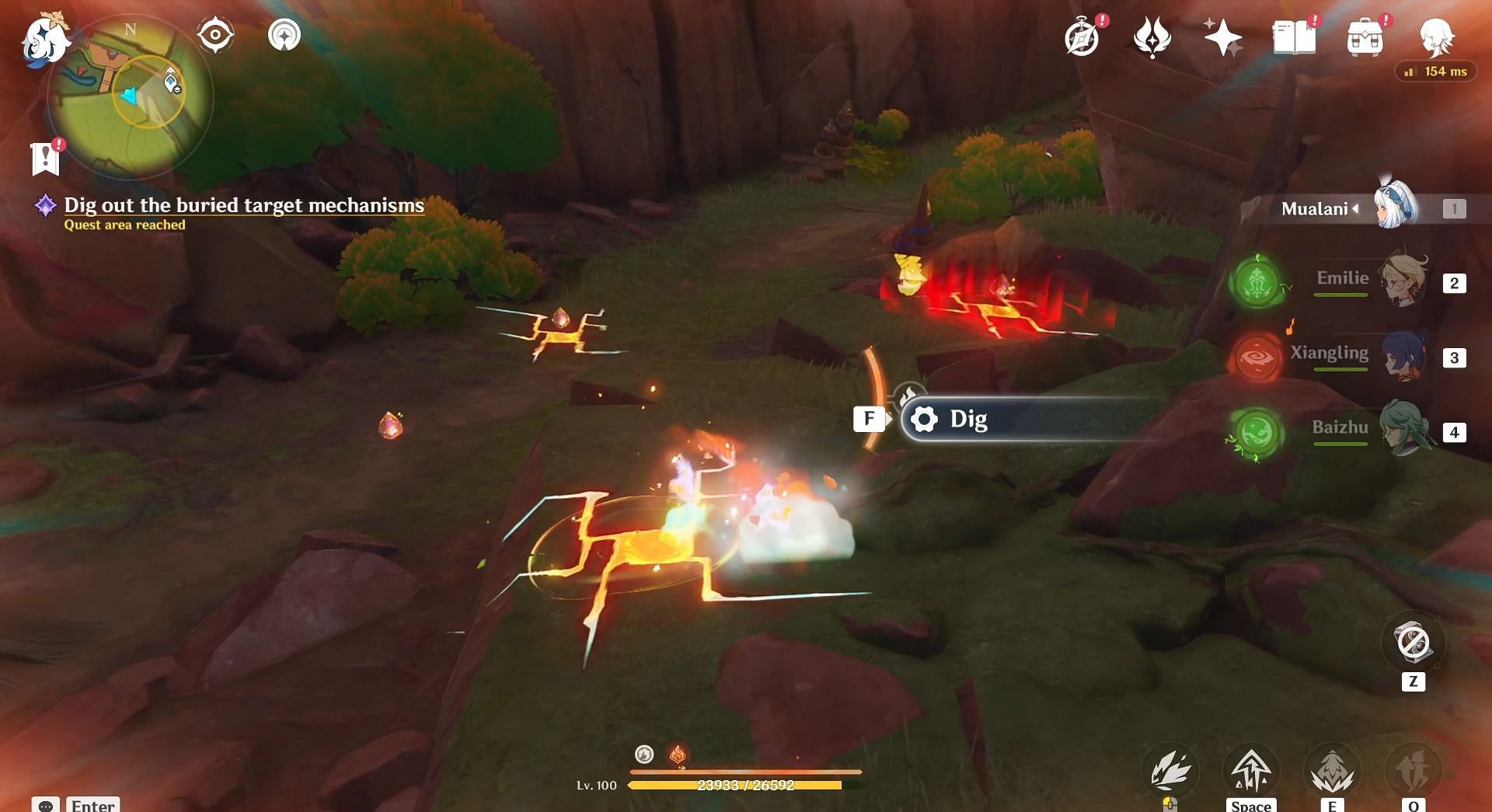 The fastest way to find the "Dig" option is by noticing the colors of the glowing areas on the ground. The red glowing areas contain explosives while the yellow glowing area houses the "Dig" option. It doesn't matter if you accidentally get hit from the explosive digging sites and your Saurian takes damage. As long as you find and pick the '"Dig" option in one of the glowing areas, the commission will be successful.