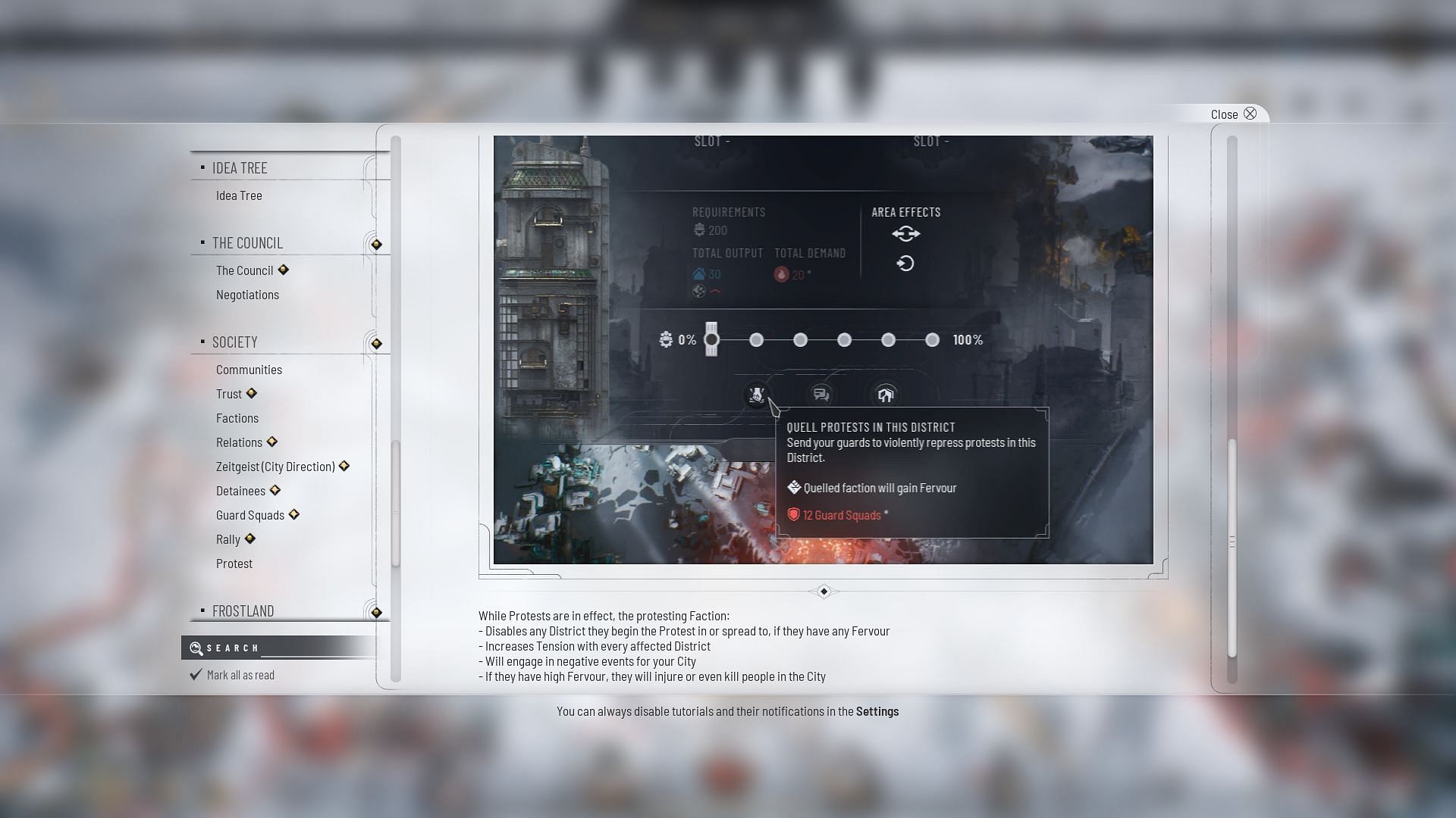 There's no reason to deploy the Guard Squads unless there's an ongoing protest or any criminal activity in an area. However, if there's some unrest in a given district, you can follow these steps: