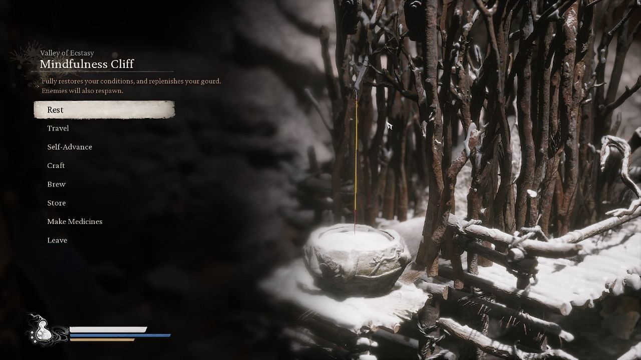 The Fiery Gourd can be found in Chapter 3 of the game, which is titled "White Snow, Ice Cold". To find it, head to the Valley of Ecstasy within the chapter, then proceed to the Mindfulness Cliff Keeper's Shrine. Once you have reached the shrine, proceed straight till you encounter some wooden planks.