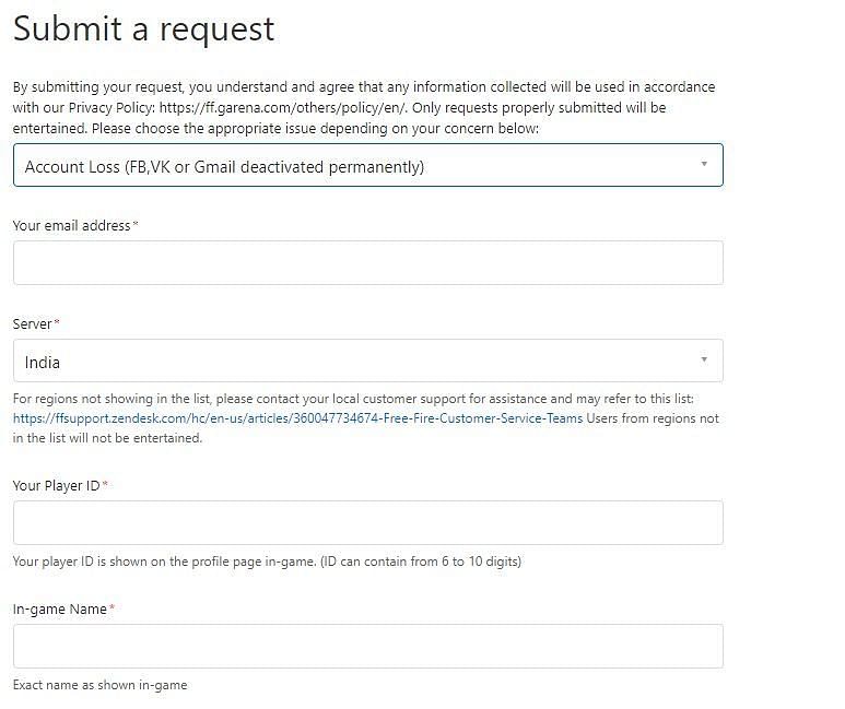 For submitting the form, players will have to fill all the necessary details like Player ID, exact IGN, and character level accurately. If there is an error in these details, the request will not be considered.