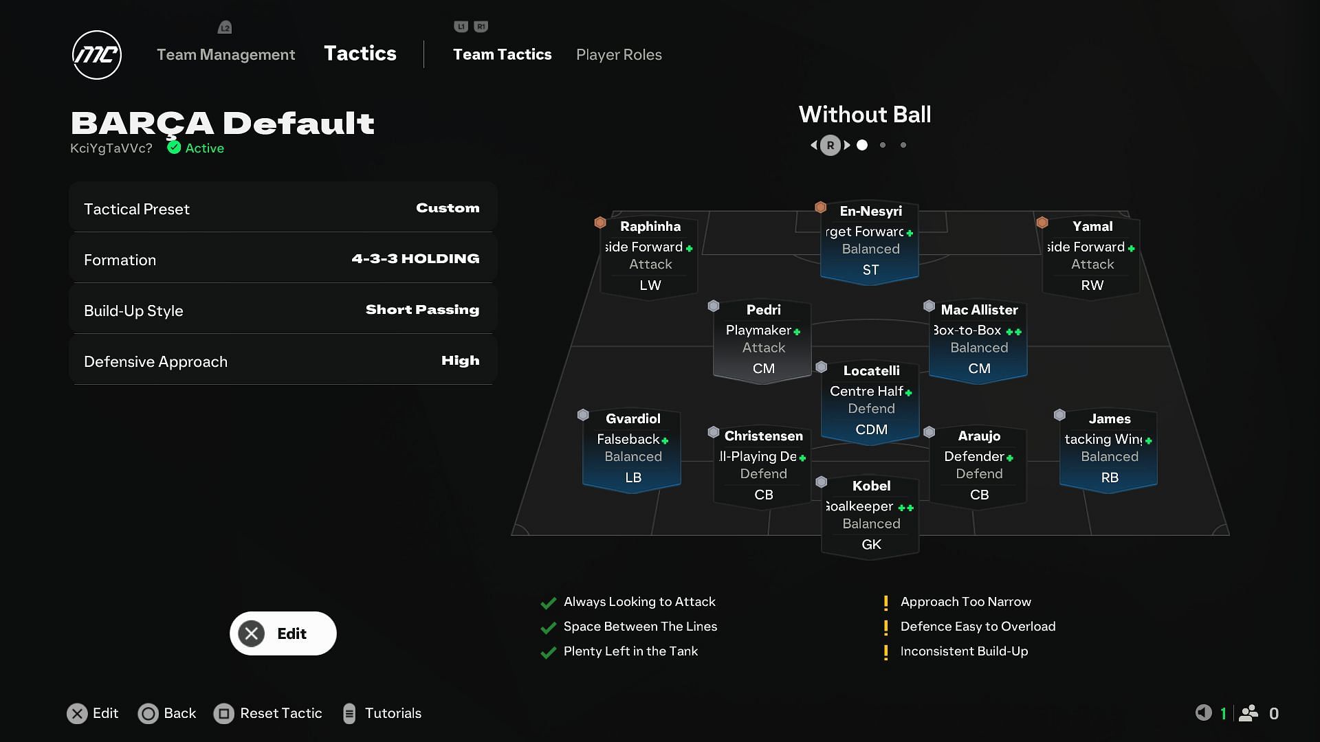Raphinha and Lamine Yamal will stay wide in the field to pose a threat whereas Mac Allister might make some forward runs into the opponent’s penalty box to score some bangers. Pedri will be the sole playmaker and pass the ball around the field, looking for openings.