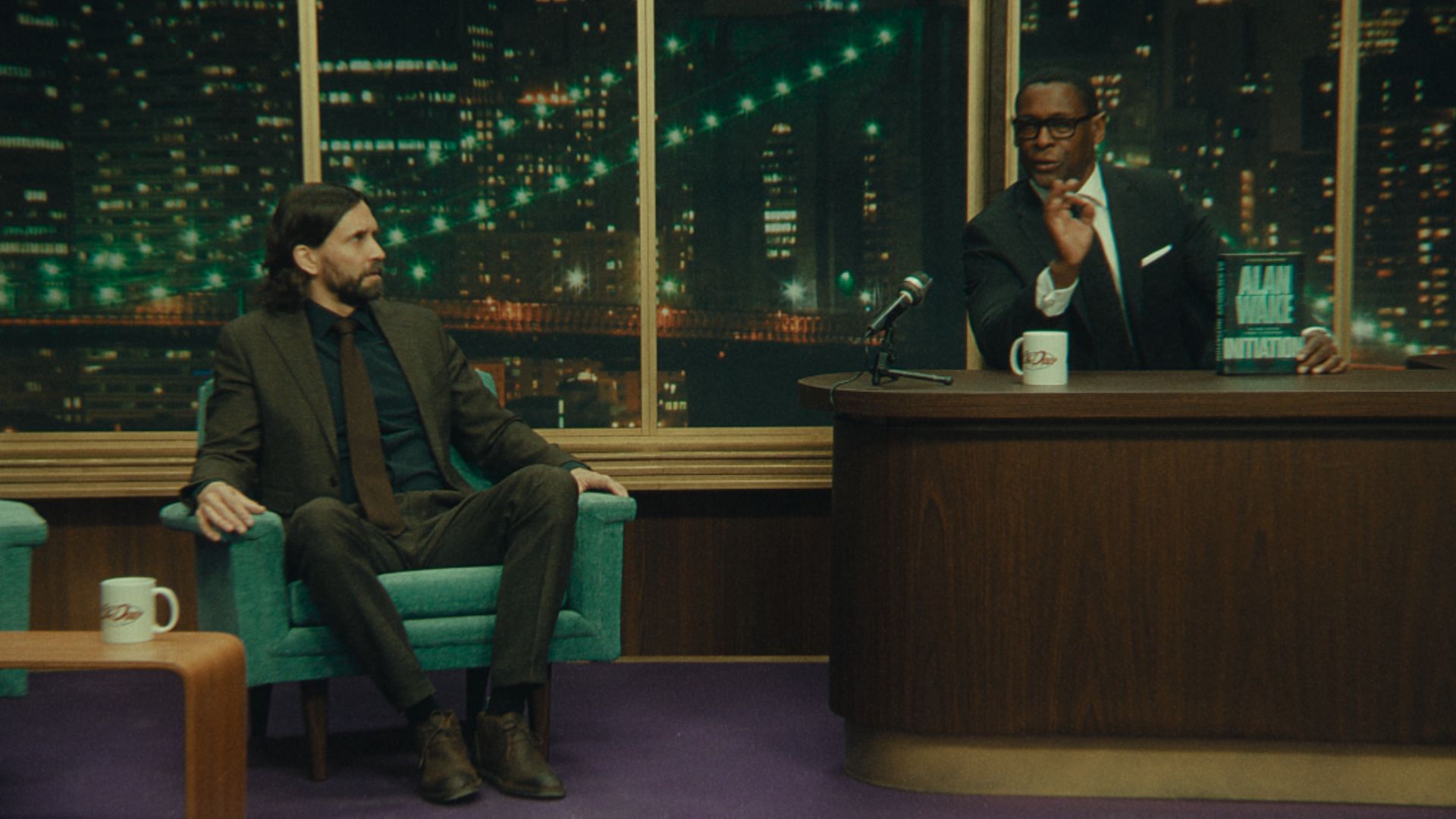 To illustrate, Alan encounters a television during his journey and is unexpectedly transported into a live television program, complete with a host and a studio audience.
