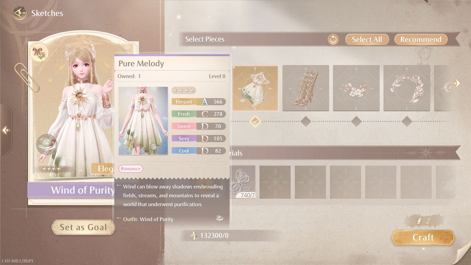 Outfit sets typically focus on a particular stat. This means all the pieces in the set will emphasize that stat. For instance, an outfit set centered around the “Sweet” stat will ensure that all its components also prioritize that attribute.