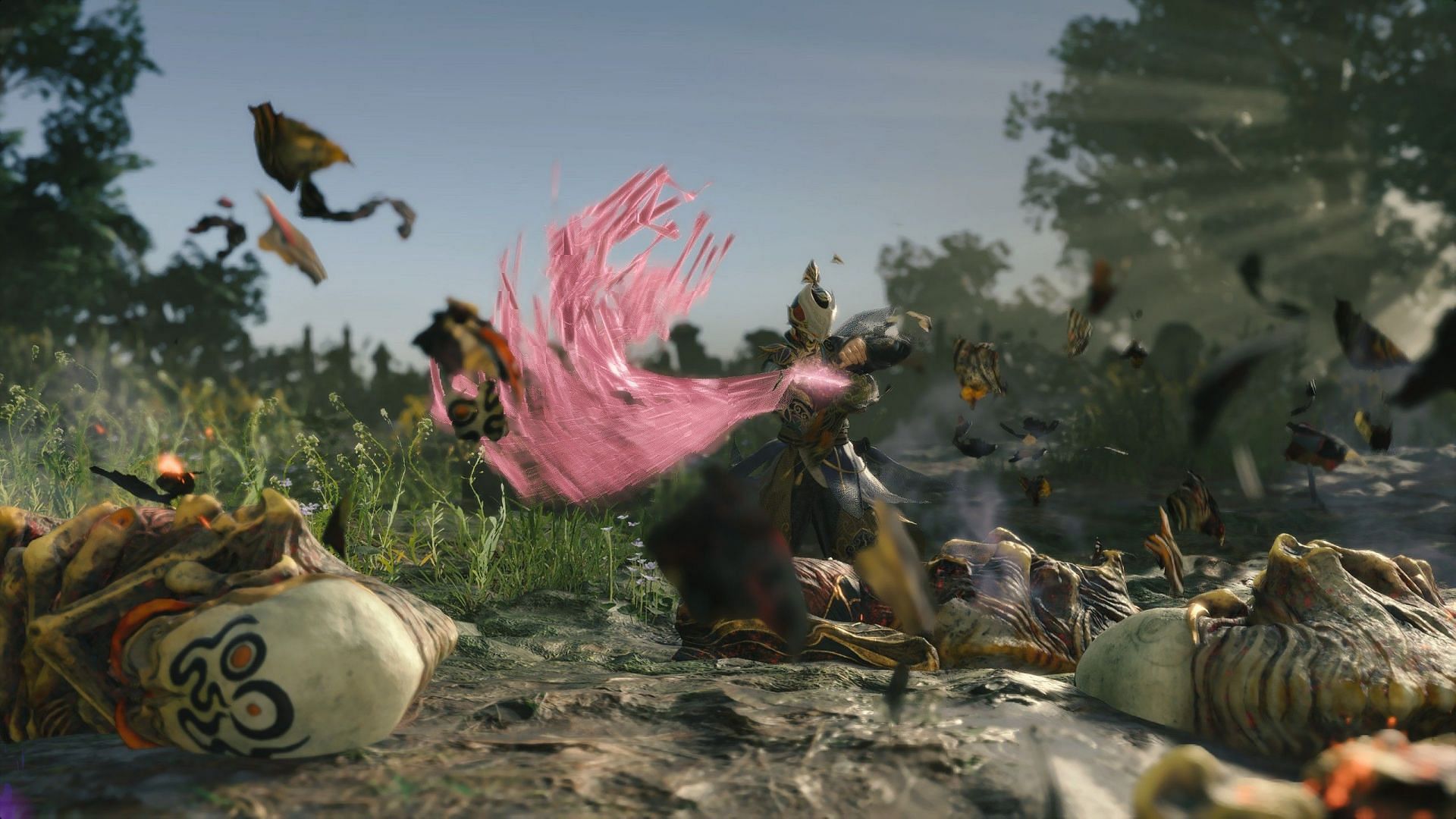 The basics start off simple, with three-hit sword combos, uppercuts, downward slams, as well as guarding and dodging. However several hours into the game, new abilities can be unlocked by spending Musubi - rewards obtained for beating levels among other progression elements. These include parrying, counterattacking, learning new Oka Dance skills to reduce enemies' Resist Gauge (which is a sort of pose meter) easier, and even unlocking the Bow to deal with pesky flying Seethe.