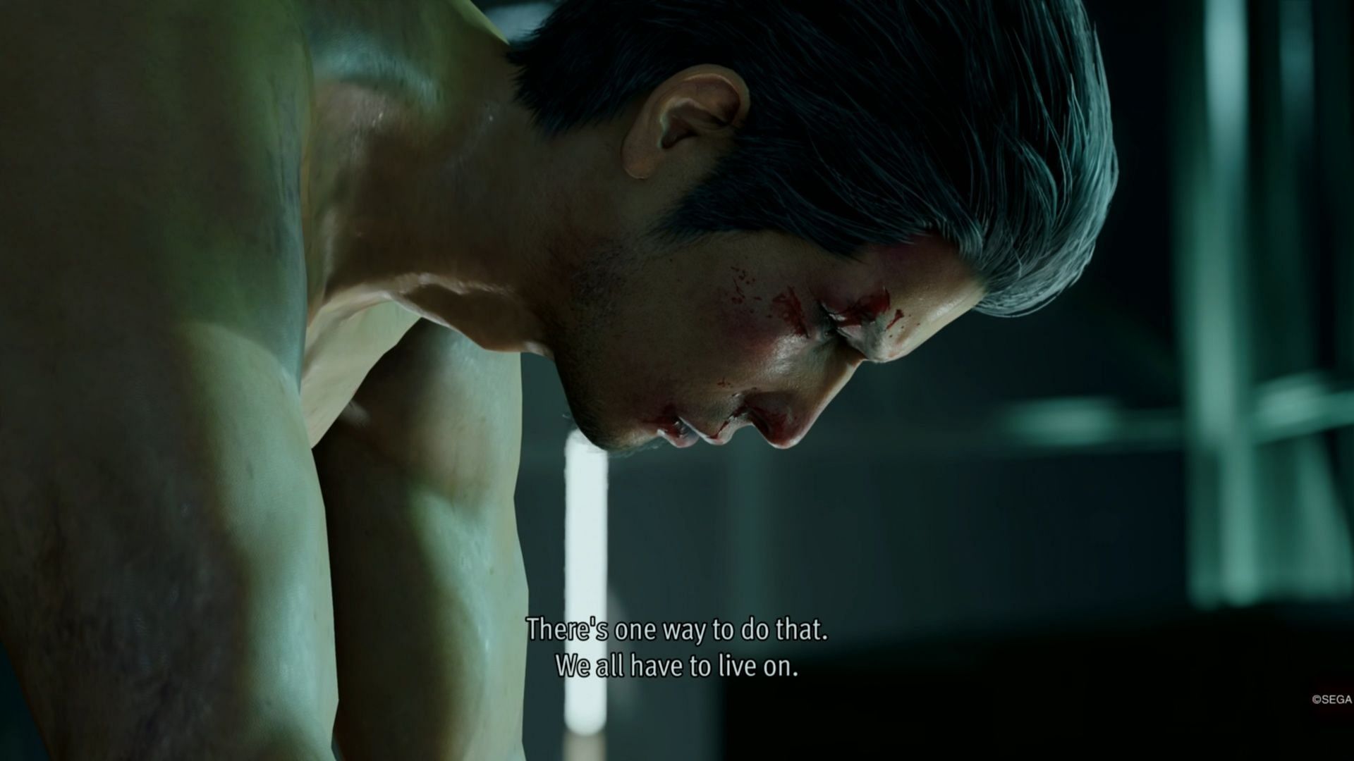 However, Kiryu staggers over to the son of Masato Arakawa as he continues to demand his life be taken if the Yakuza ever want peace. However, Kiryu collapses down to the ground over Ebina. Kiryu claims he has no right to try to apologize, and nothing he could ever say would be enough.