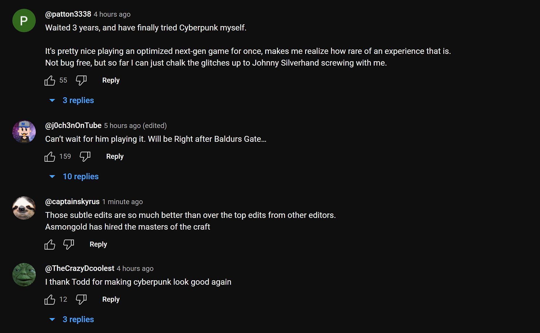 Here is how viewers reacted to the clip of the OTK co-founder praising Cyberpunk 2077's latest update: