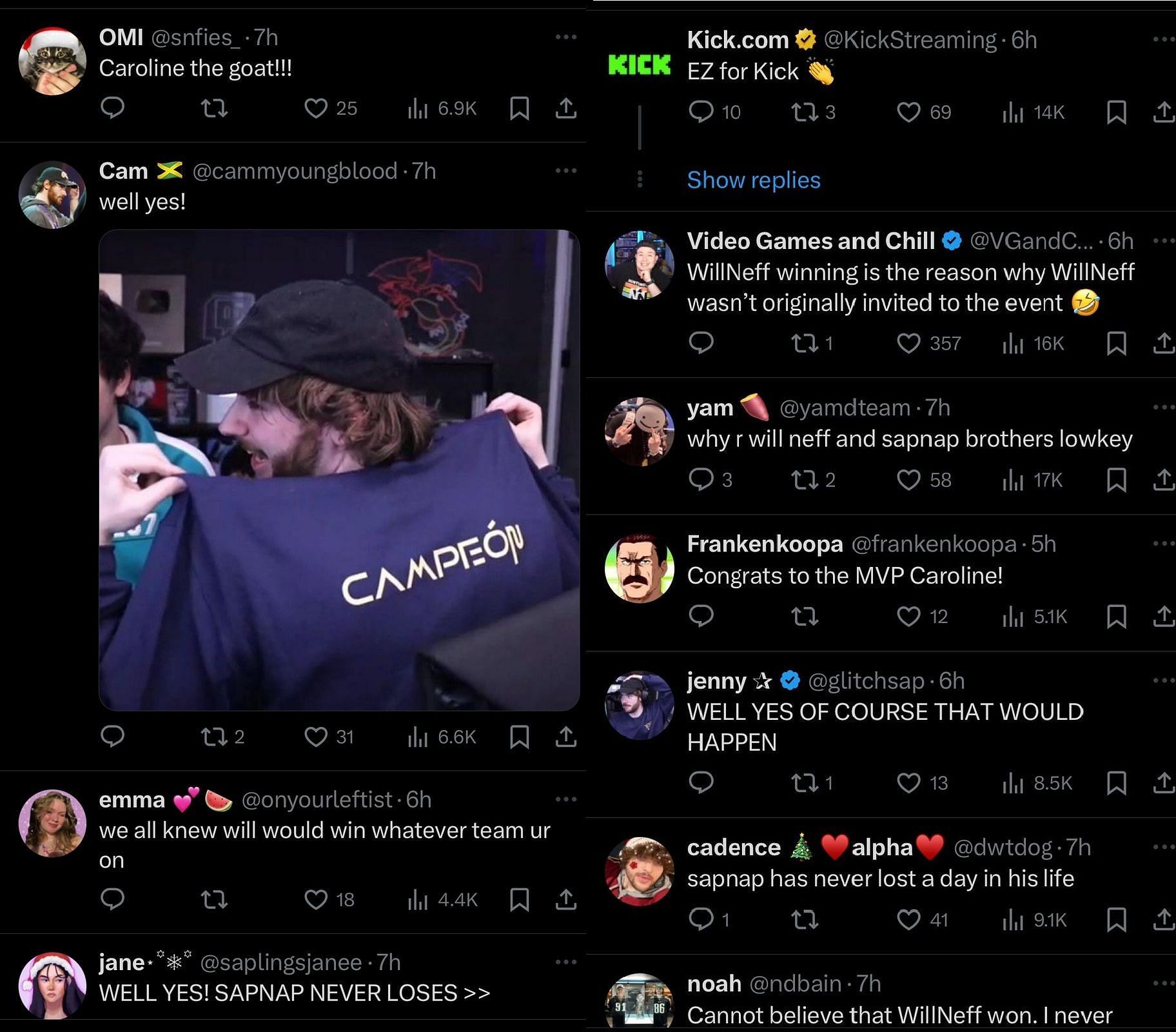 Team Kick, composed of Nick "Sapnap," Caroline Kwan, Moe "Yassuo," Will Neff, and Moises Bournigal, faced against Team YouTube in the final. Reacting to the victory, one X user said: