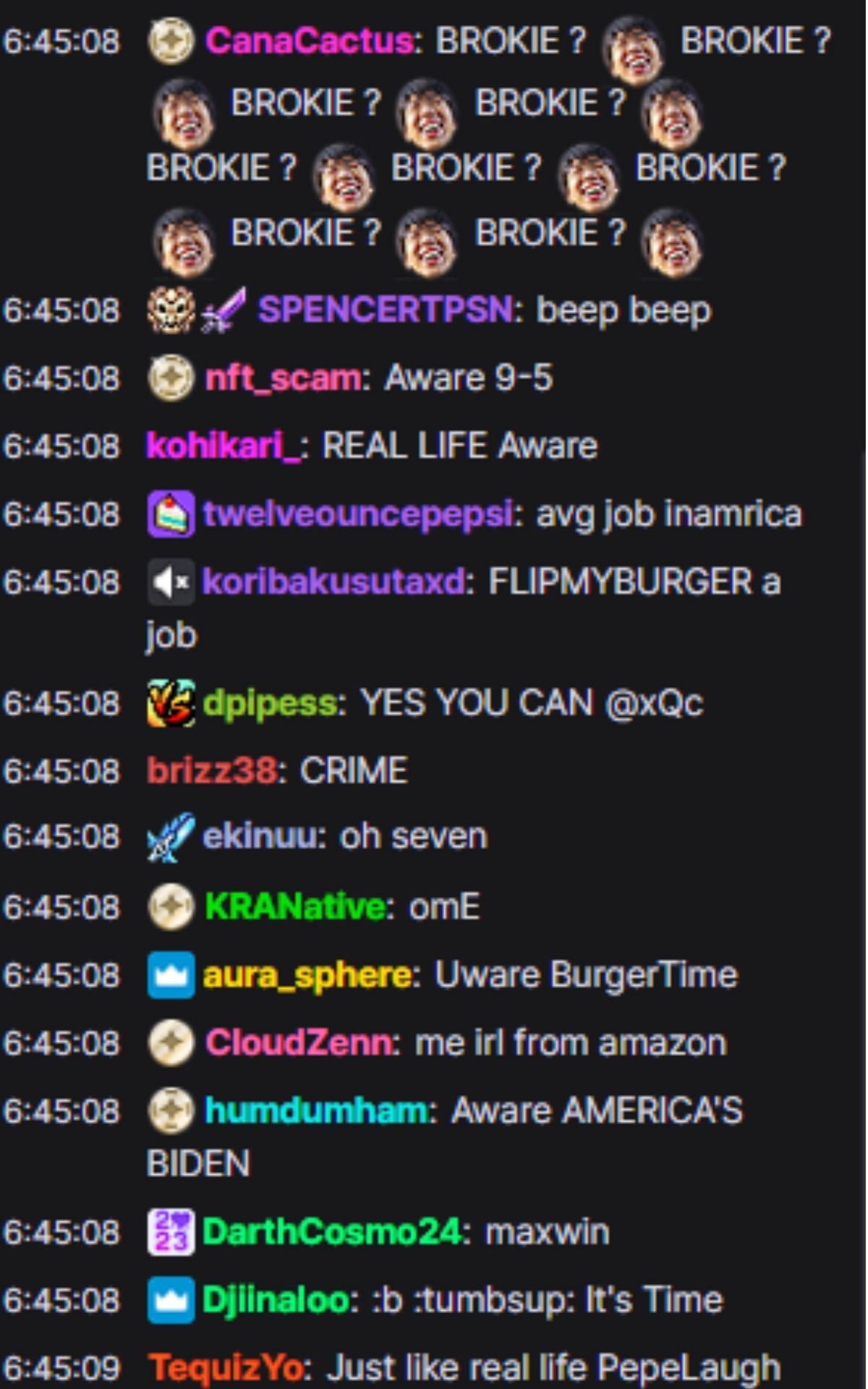 xQc’s chat had a laugh at his expense and spent much of the time mocking the streamer for being “broke,” saying that he should start flipping their burgers.