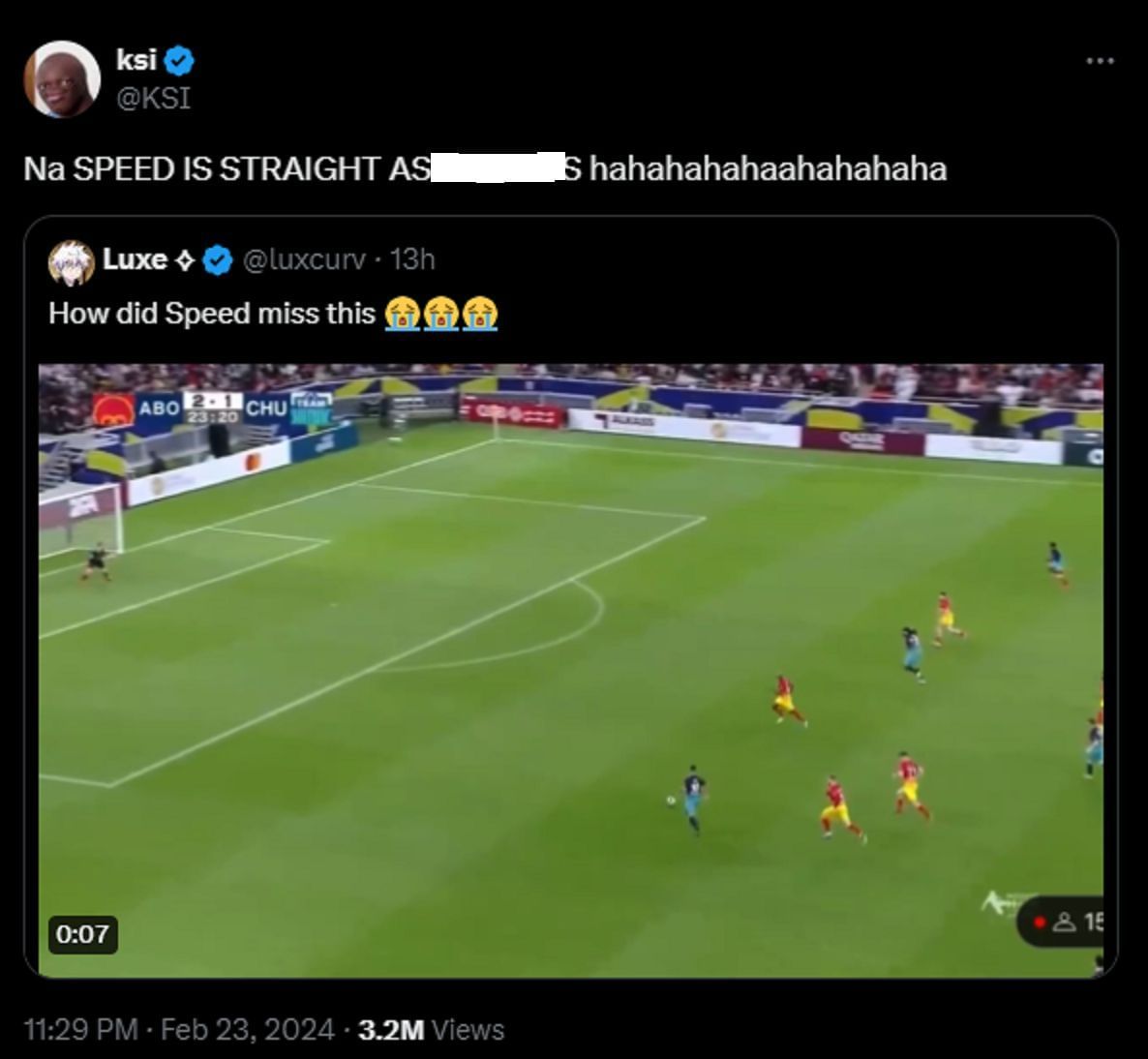 UK YouTuber and streamer JJ "KSI" engaged in some playful banter yesterday (February 23) after witnessing fellow streamer Darren "IShowSpeed" struggle during the Match For Hope charity game in Qatar. IShowSpeed was not in top form and missed several golden opportunities, notably those set up by the recently retired Eden Hazard.