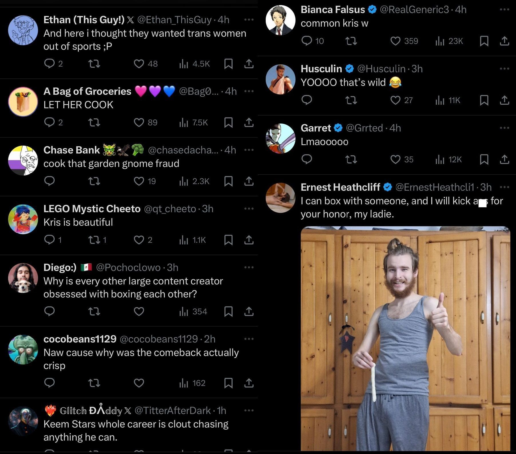 Content creator and MrBeast crew member Kris Tyson (formerly known as Chris Tyson) went on X to criticize Daniel "Keemstar," the controversial content creator, following his apparent invitation to a boxing match. For those unfamiliar, Kris underwent hormone replacement therapy (HRT) earlier this year, sparking significant discussion within online communities.