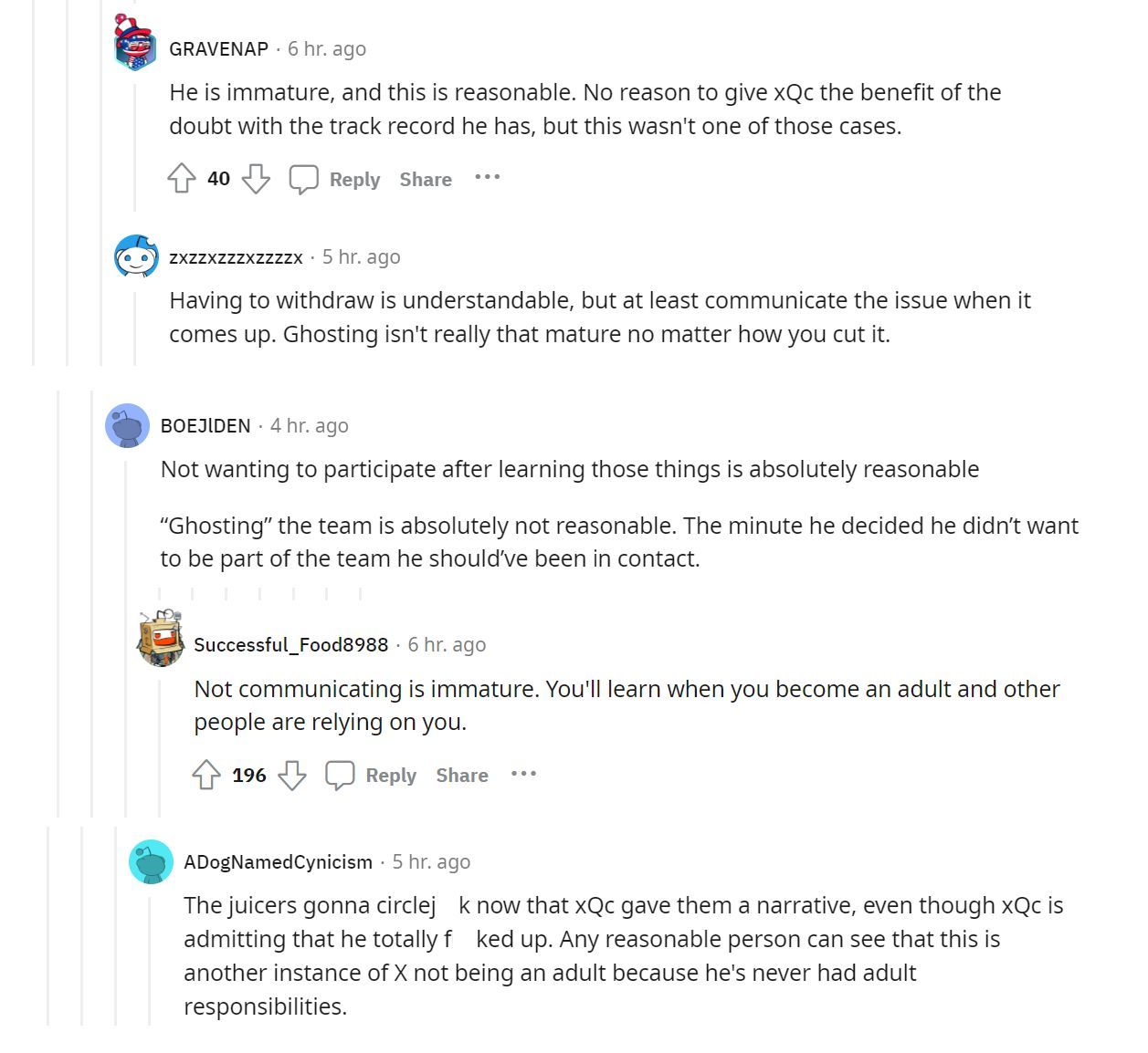 The recent clip quickly made the rounds on the popular r/LivestreamFail subreddit, with many users pointing out that xQc's failure to communicate adequately with Turtle Troop was a sign of immaturity. Here are some of the top comments: