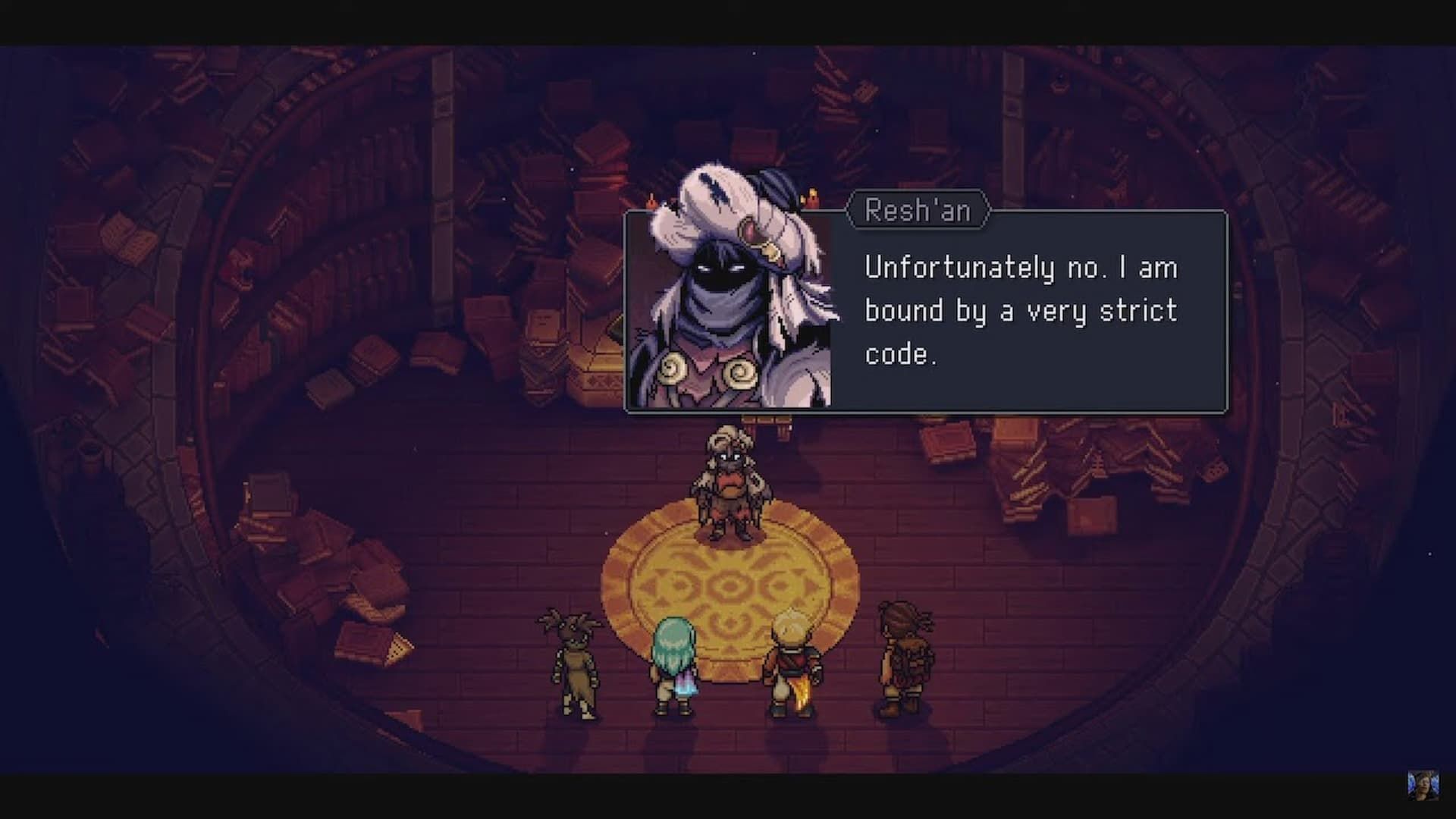 Also known as the skilled alchemist or “The Archivist” in Sea of Stars, his goal is to cross countless universes to stop The Fleshmancer's havoc. Resh'an is arguably the strongest party member with his near-divine abilities. He has a cork for a weapon that channels arcane magic for its attacks.