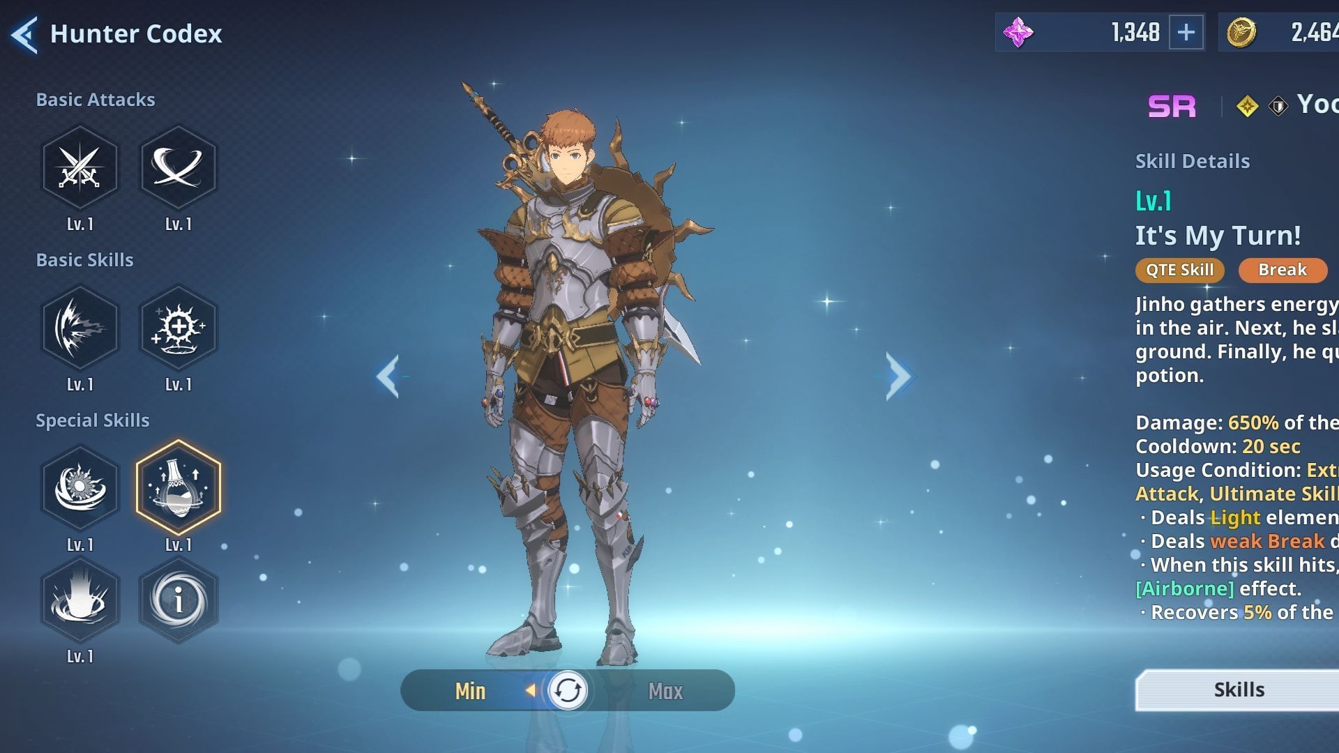 Yoo’s Ultimate and Trust Me Basic Skill applies the defense increase buff to allies, with the latter also dealing medium Break damage. His Support and QTE can recover the HP of his allies, and My Turn Basic Skill can stun enemies. So, players must first increase these skills and then move to another.