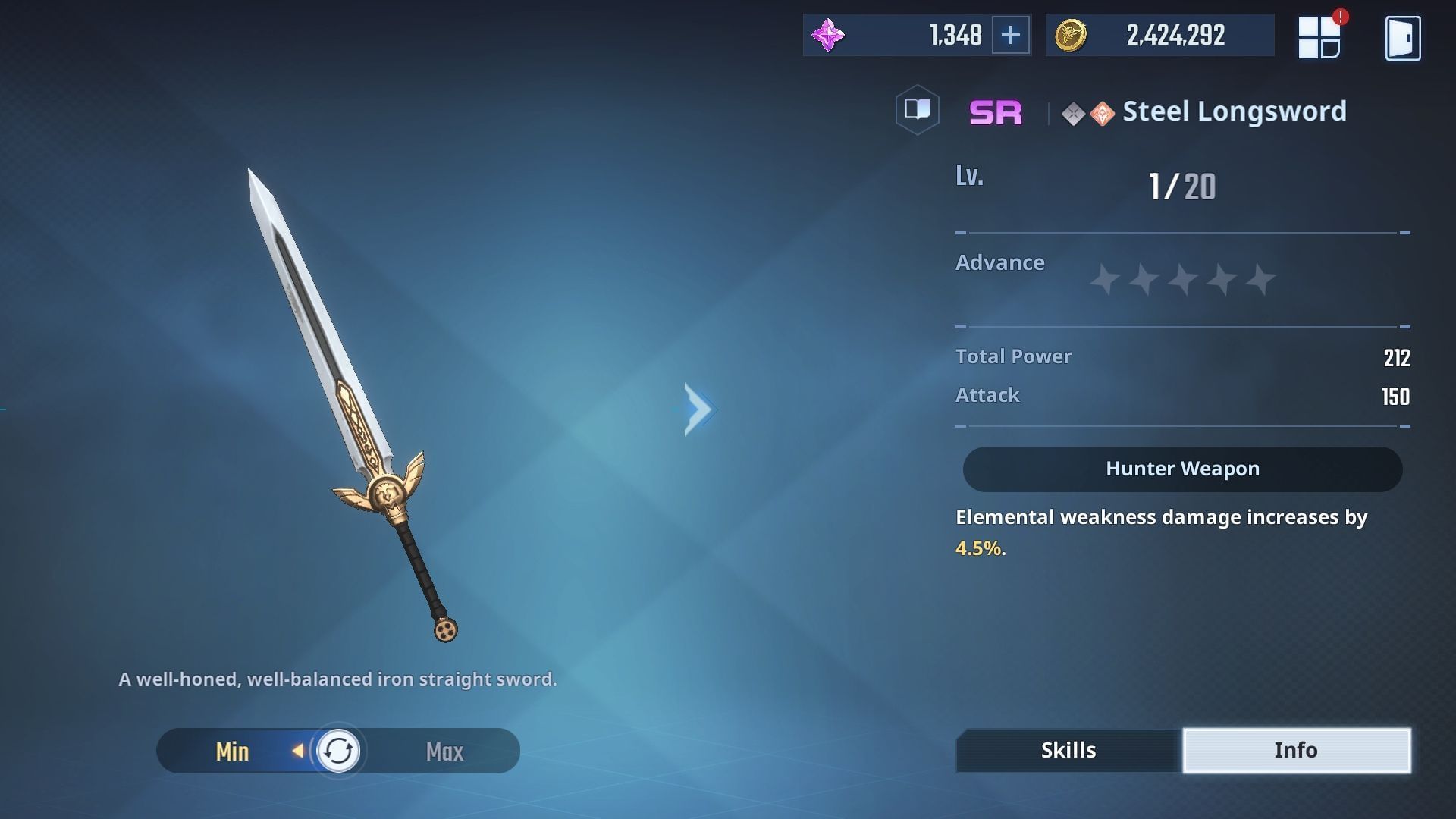 The recommended Solo Leveling Arise weapons for the best Yoo build are SR Steel Longsword and Steel Shield. Steel Longsword enables him to deal an additional 4.5% damage at the base level and 12% at the max to enemies vulnerable to the Light element.