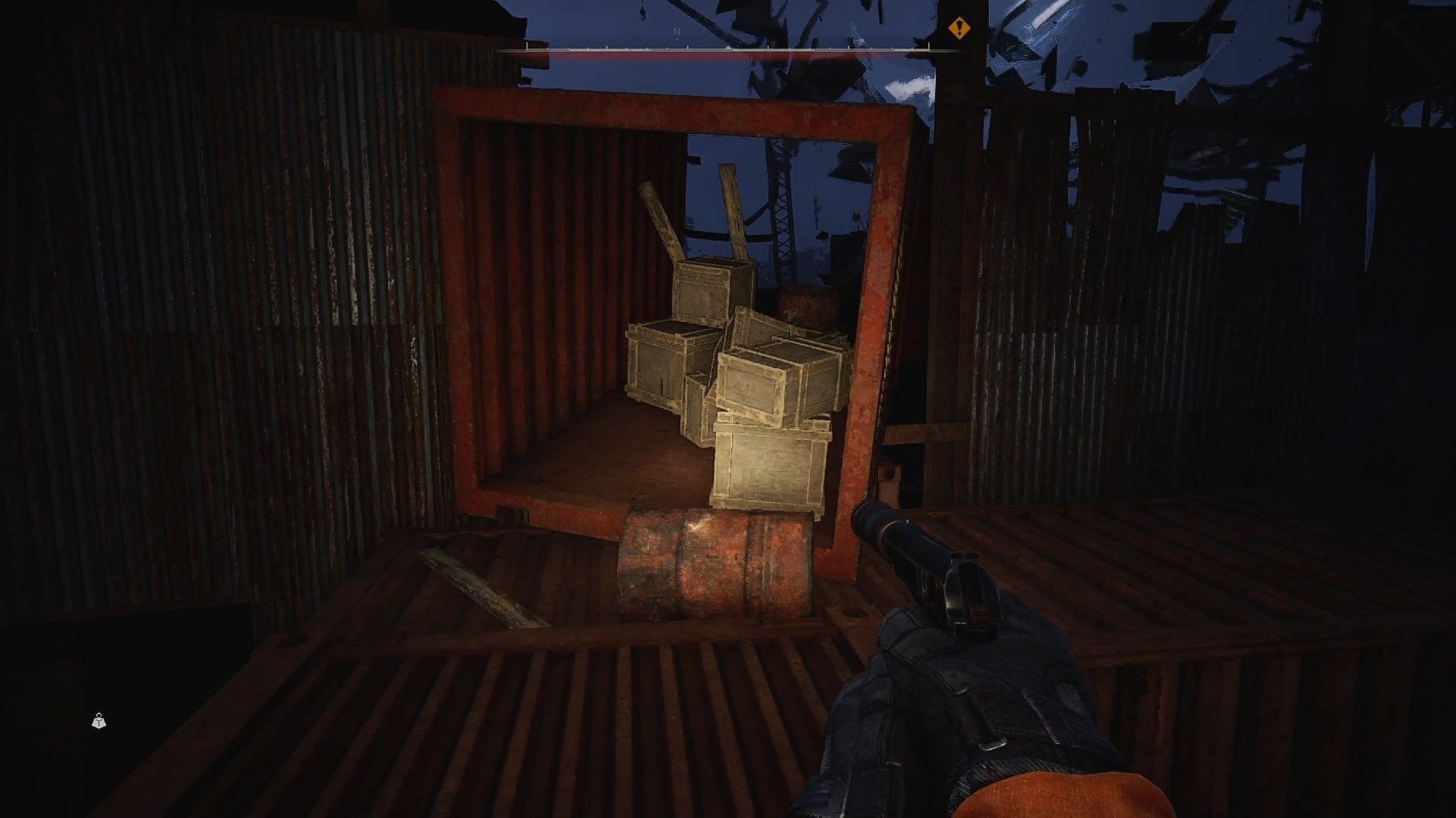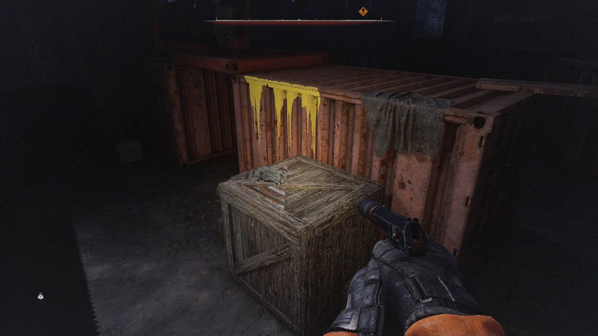 One of the red containers has a yellow mark on it. Jump on top of it, and break the obstacles to fall from the other side. With that, a mutant named Pseudogiant will go rogue and eliminate the bandits in that area.