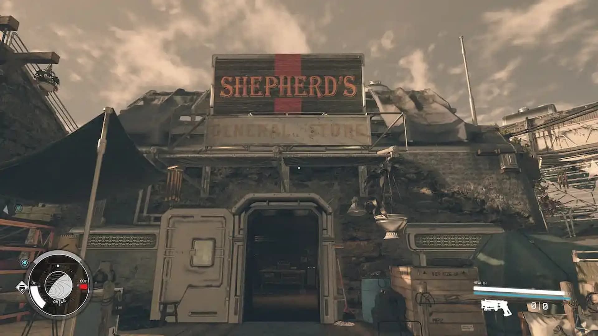 To locate the mysterious puddle in Starfield, head to the Cheyenne Star System and make your way to Akila City. Once you're inside, head left towards the Shepherd’s General Store.