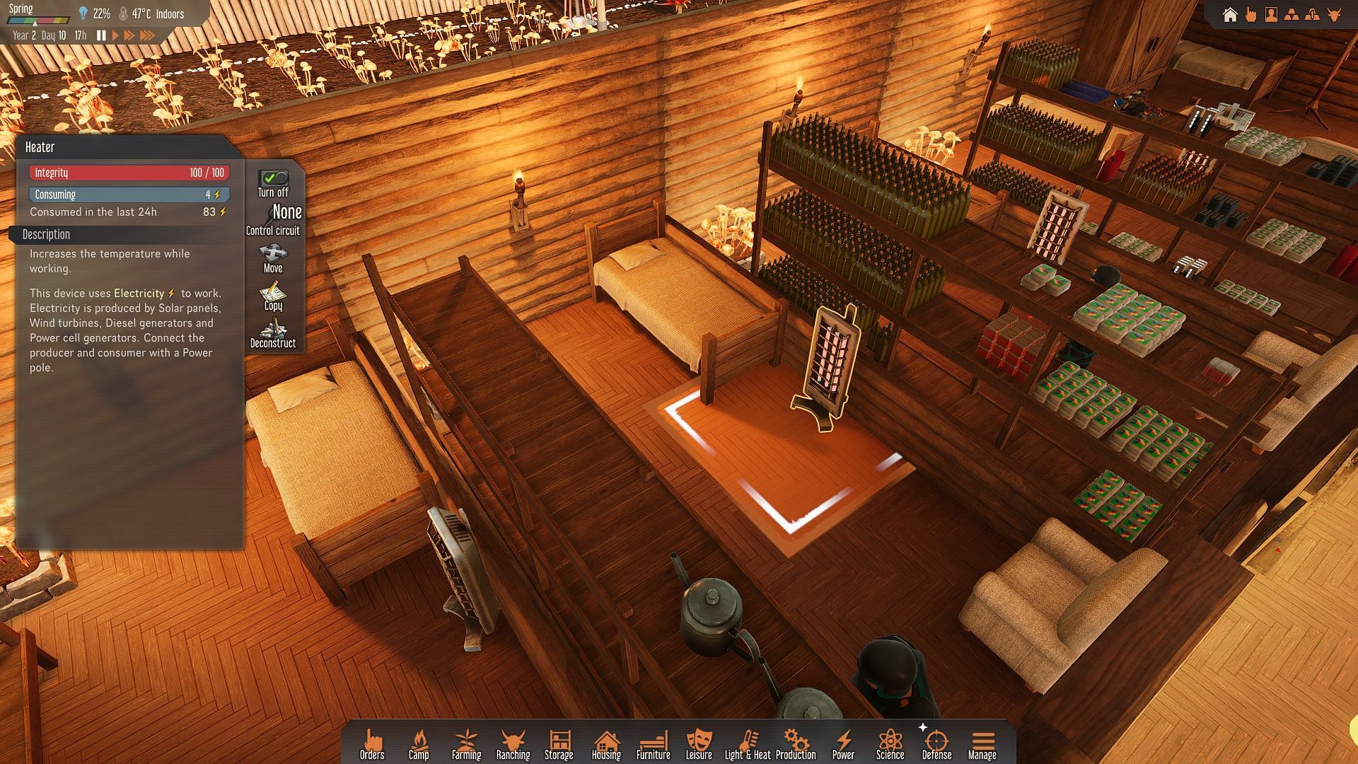I love how heaters work better in closed spaces than out in the open and the fact that opening or closing a window can alter the temperature of a room. Not to mention there are different types of clothing for different seasons. It's not a one-type fit for all sorts of situations. Not managing this aspect will create problems during the gameplay.
