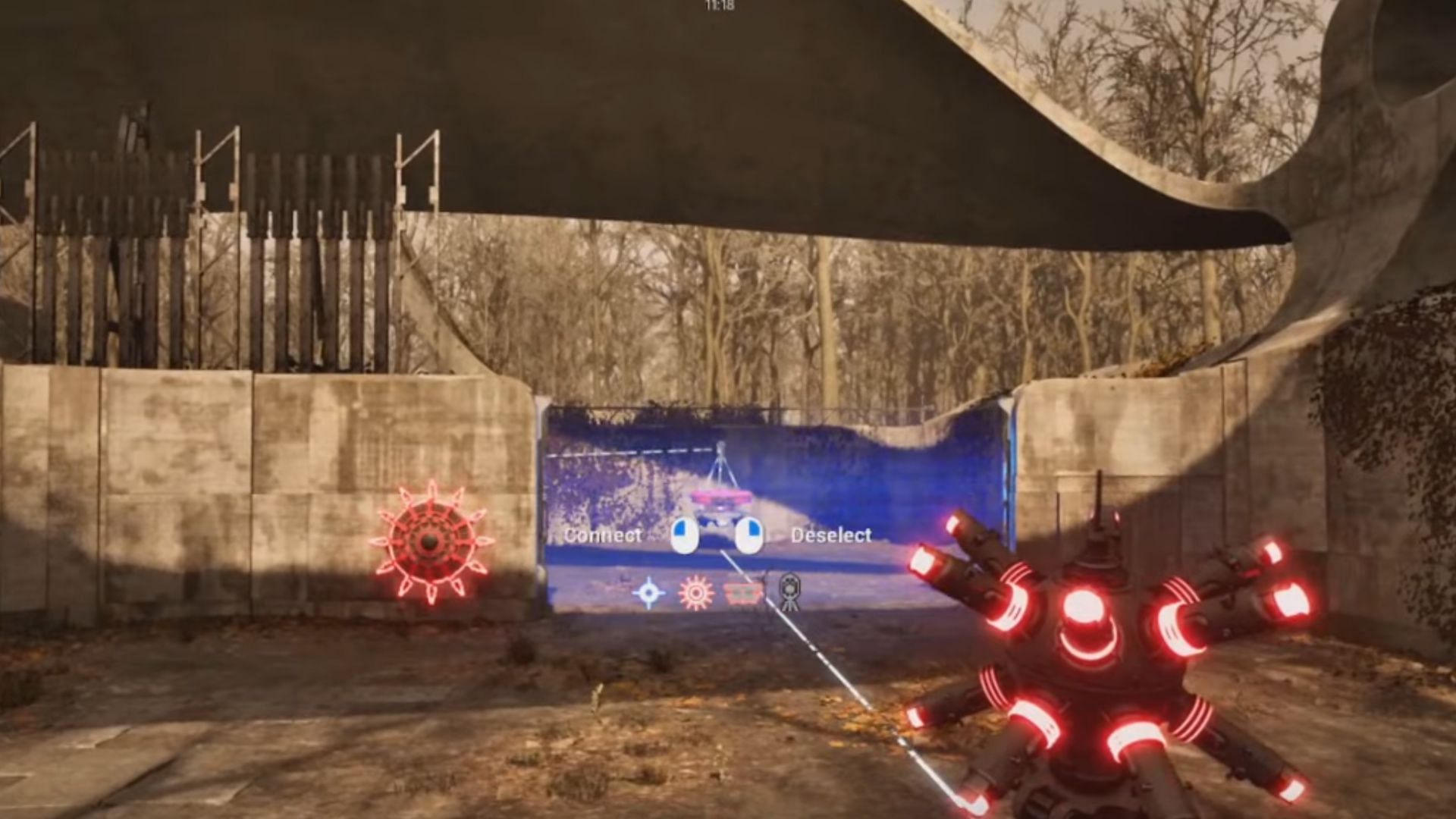 Proceed straight ahead and retrieve the Connector. Now, make a left turn once more to locate a red switch positioned directly above you. Select it and then backtrack to the vicinity of the Inverter. Select another blue switch and one that aligns with the Inverter as depicted in the provided image for reference.