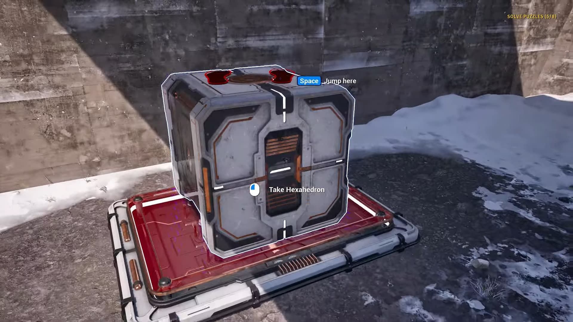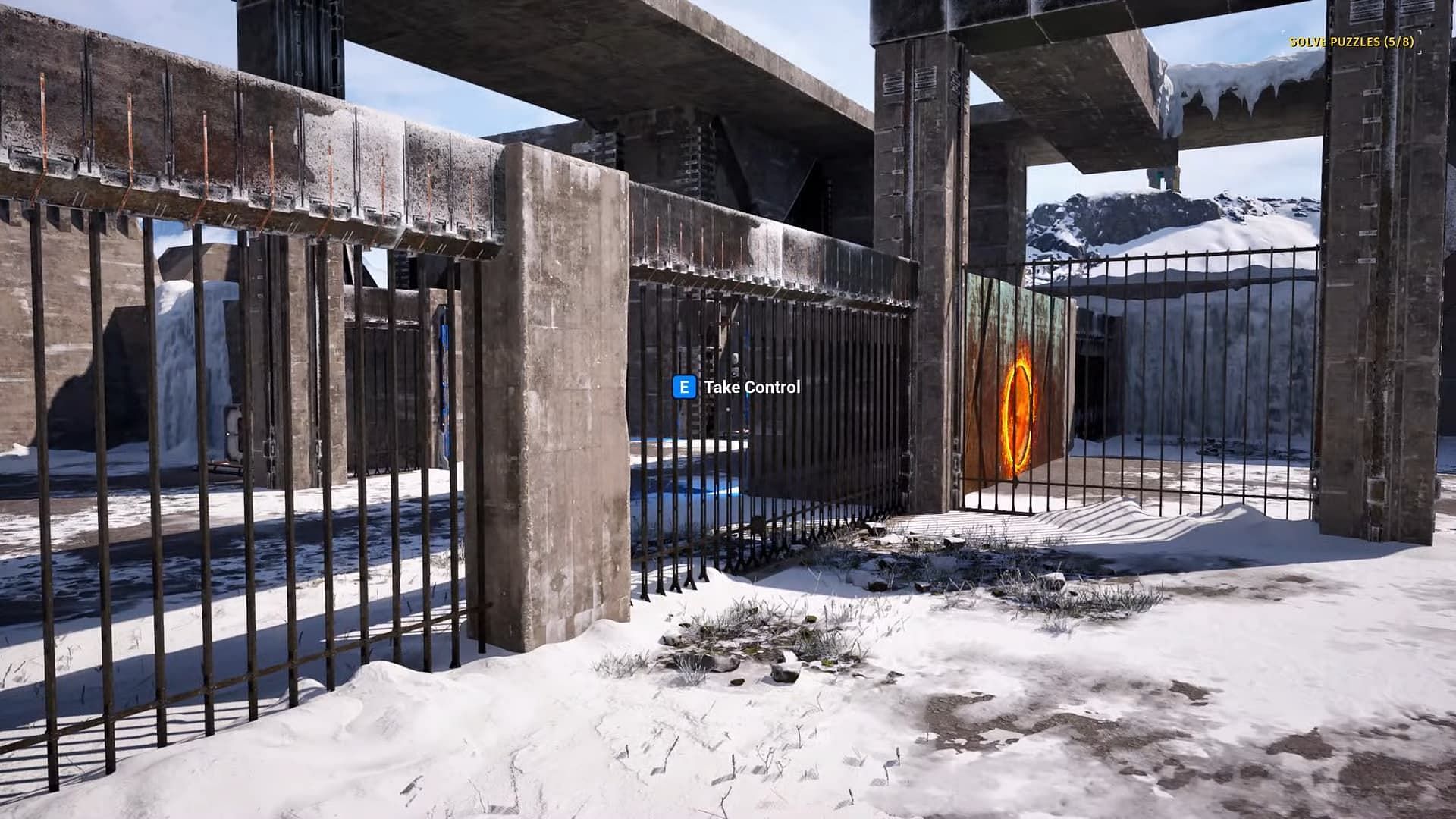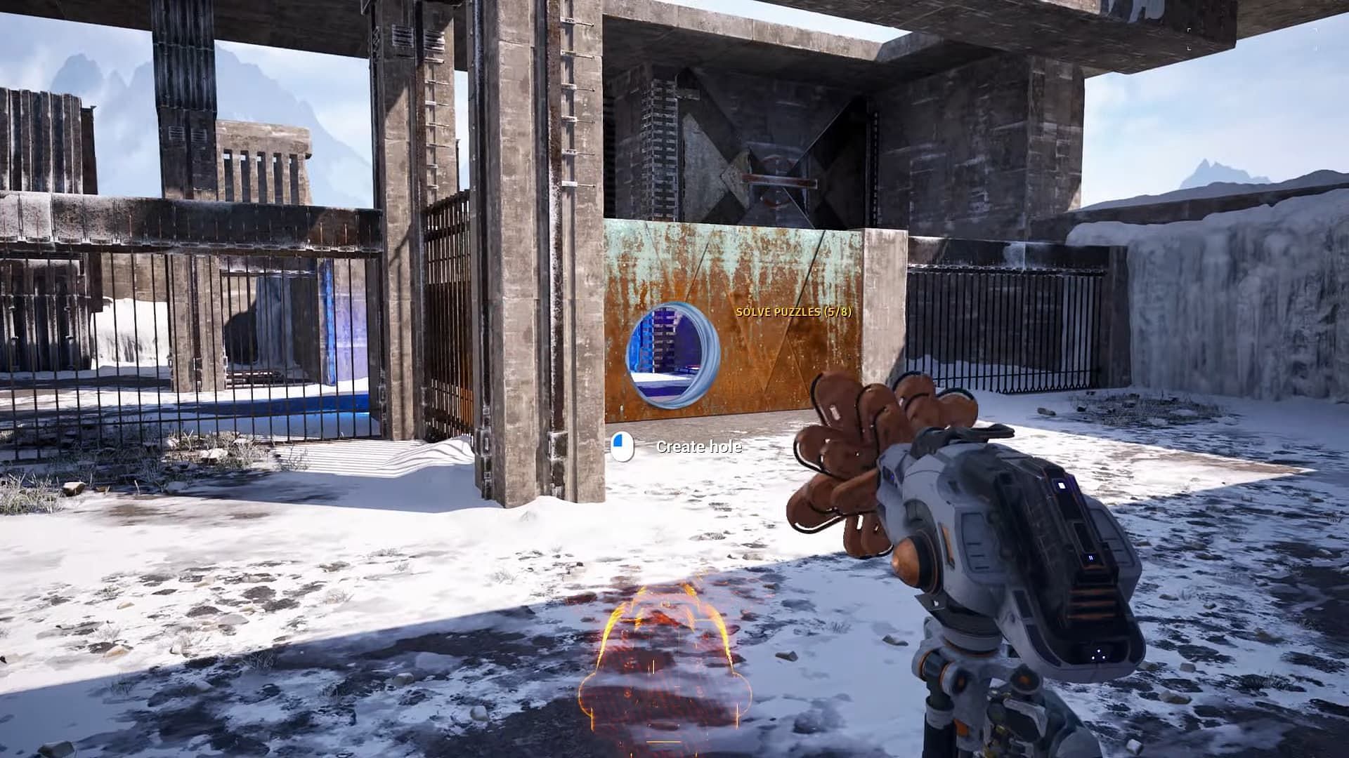 The Two Body Problem is the sixth puzzle within the Desolate Islands in The Talos Principle 2. To solve it, start by grabbing the Driller and creating a hole in the wall on the right side. Position the hole strategically at the right end of the wall, ensuring the visibility of a red Transmitter during this process.