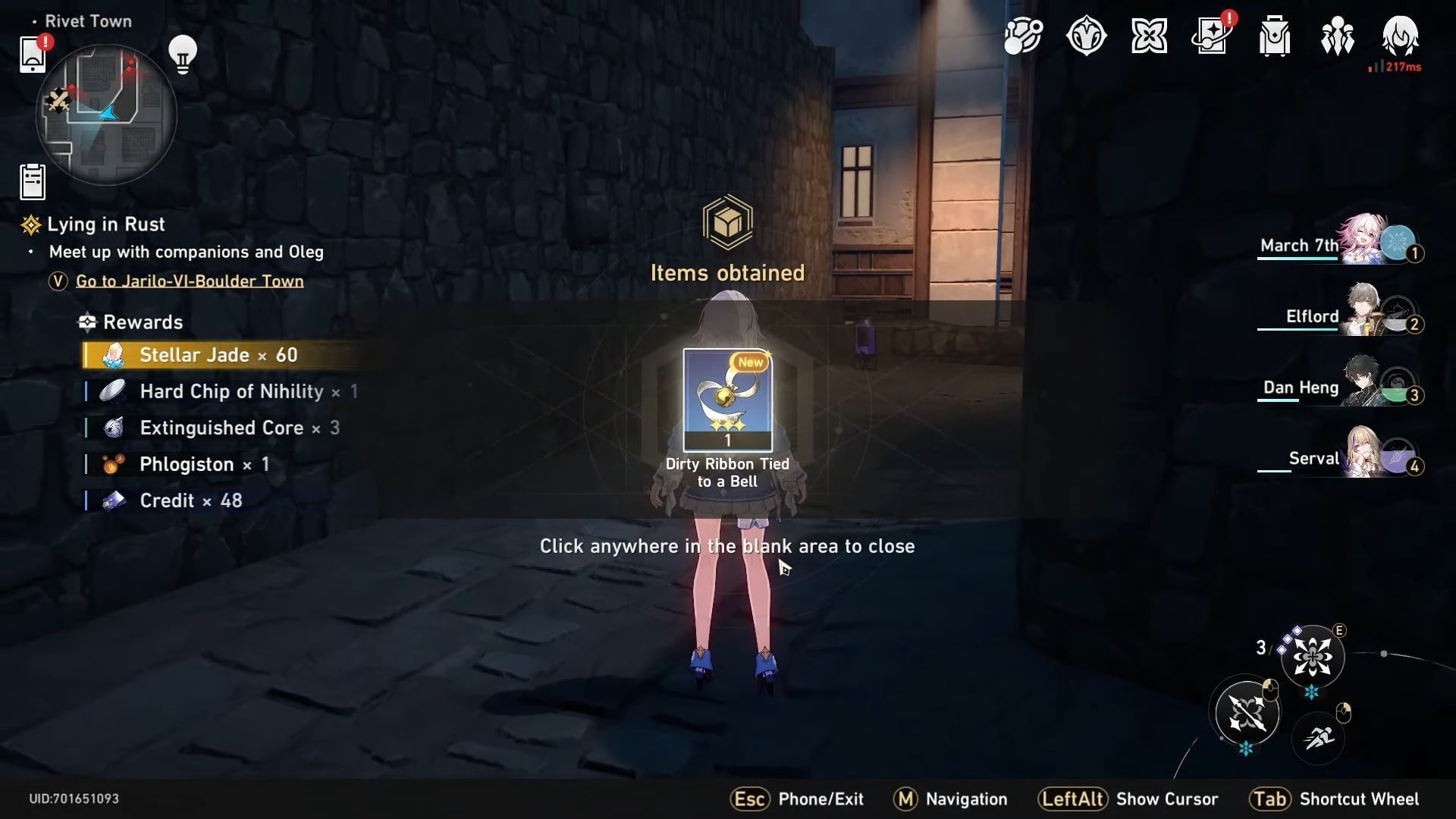 Star Rail players will receive tons of rewards, including a unique item, Dirty Ribbon Tied to a Bell, required to complete the hidden quest from the weak female voice NPC.
