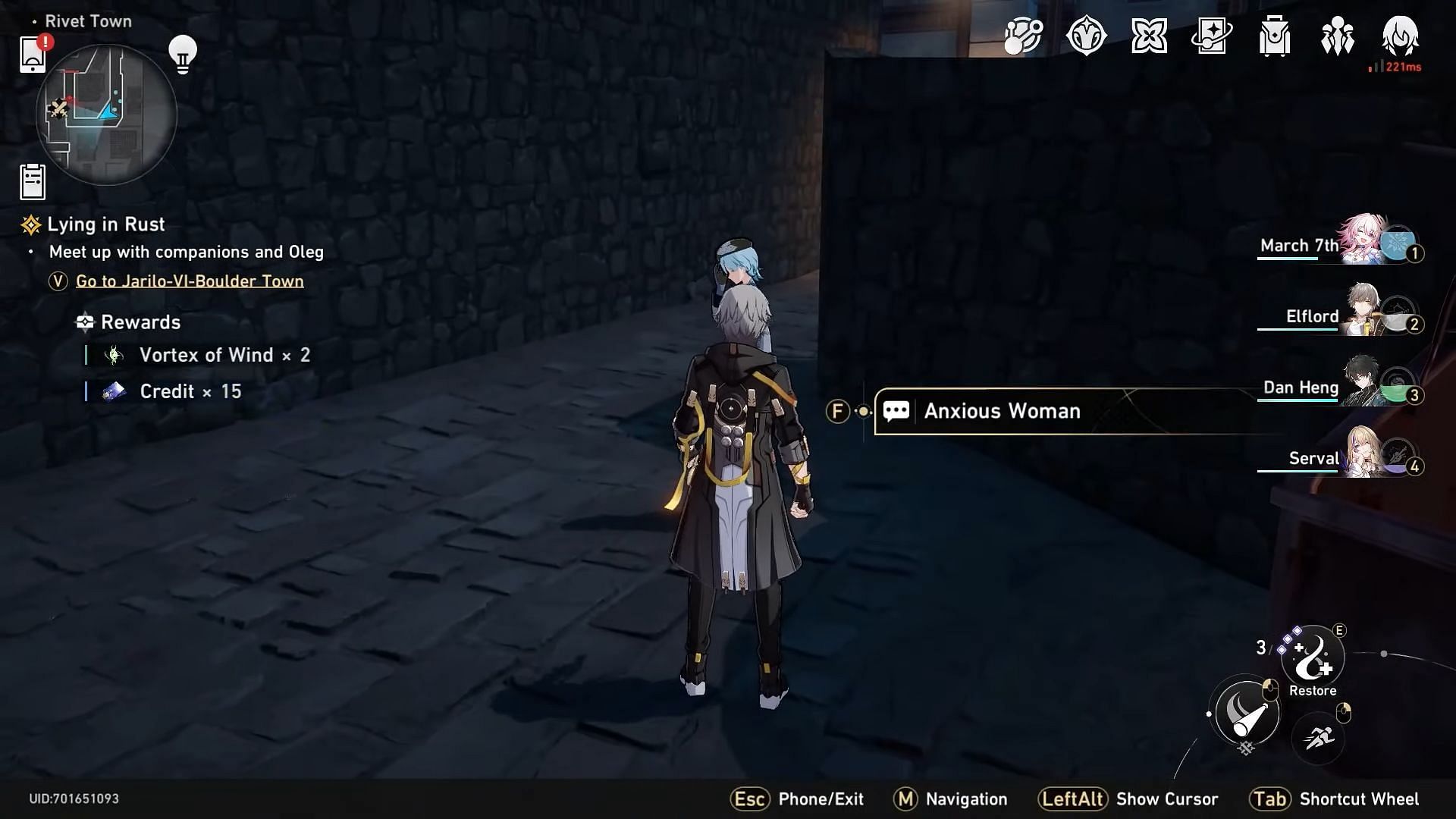 Star Rail players can find the weak female voice NPC in the south of Rivet Town. Simply teleport to the south entrance waypoint and then head up the bridge. Go to the location shown in the picture above to be able to hear the weak female voice calling for her big sister. Interact with her to trigger the hidden quest where players will have to go look for her sister, who is somewhere in Rivet Town.