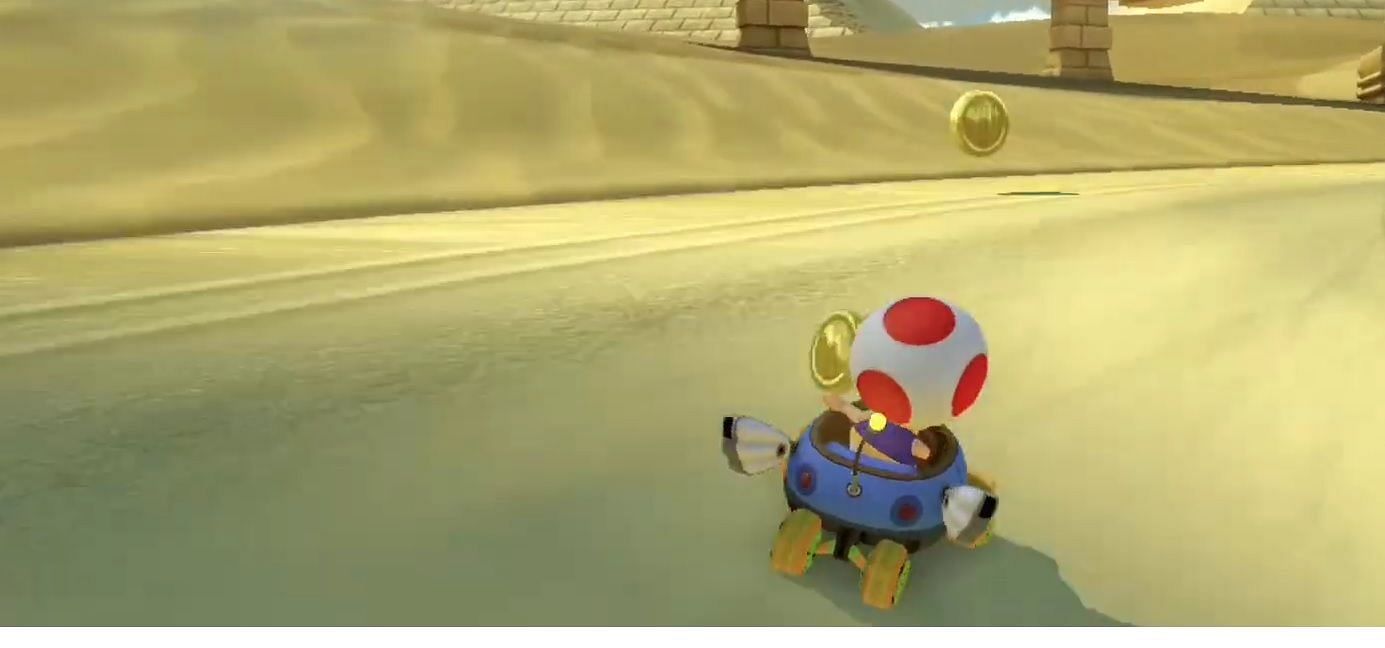 In Mario Kart 7, a feature that was first included in the SNES edition, coins were "reintroduced." Similar to Mario Kart 7, they function basically the same in Mario Kart 8, with 10 increasing your top speed and 3 being deducted for each hit. Each coin collected will give a small boost in speed, and the kart can hold a maximum of 10 coins.