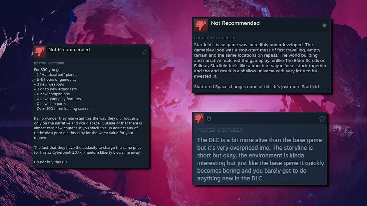 The launch of Starfield Shattered Space has received little fanfare—at least in regards to Steam reviews. Bethesda's first annual story expansion release did not bring back many fans on PC, with the player count barely crossing 20k as per SteamDB numbers. Furthermore, it's only sitting at 42% positive Steam reviews as of writing.