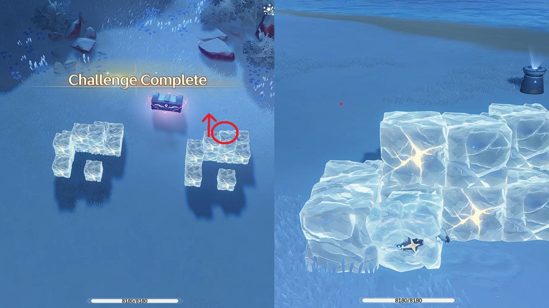 Transform into the Echo and break the ice by performing a jump motion and using a Basic Attack. This will complete the challenge. There's no reward here, but it will give you access to a sealed location.