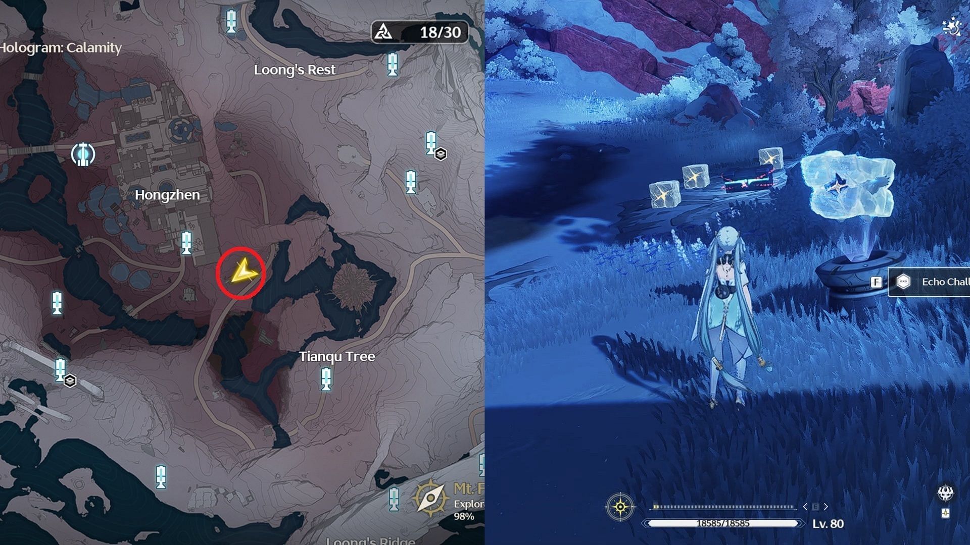 Teleport to the Resonance Beacon south of Hongzhen and head further south to find an Echo Challenge.